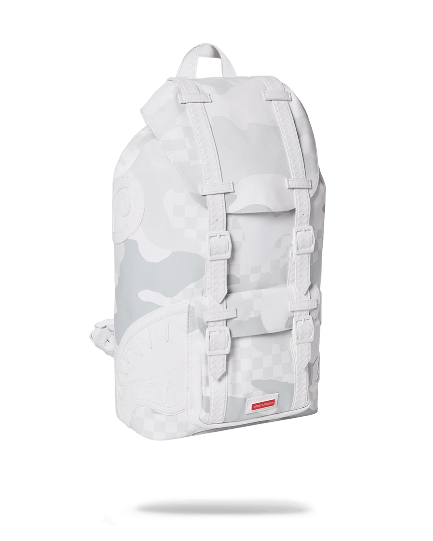 Dimensions: 20.5″ x 5″ x 11.5″ • Top Flap opening w/ adjustable magnetic snap buckle closure • Draw-string closure • Front pocket with adjustable magnetic snap buckle closure • Ergonomic mesh back padding • Adjustable straps for custom sizing • Nylon zippers with metal hardware • Embossed sharkteeth straps • Slide through back sleeve connects to carry-on luggage to free your hands