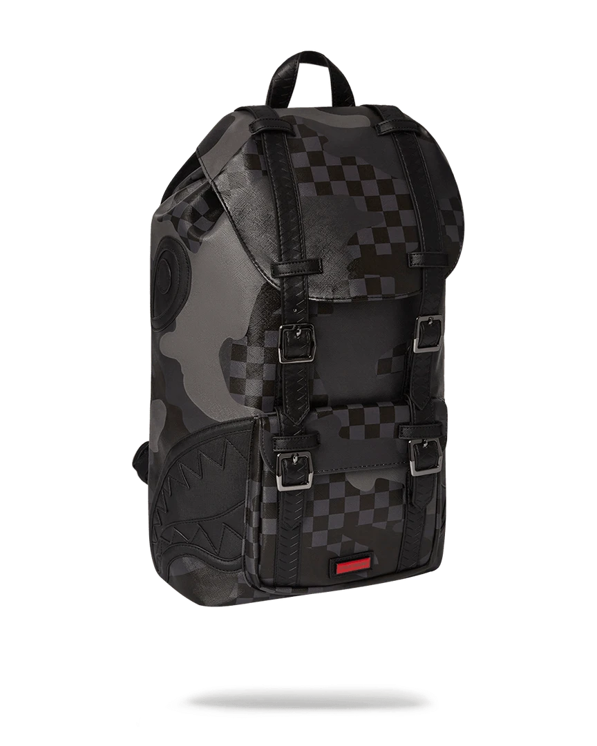Dimensions: 20.5″ x 5″ x 11.5″ • Top Flap opening w/ adjustable magnetic snap buckle closure • Draw-string closure • Front pocket with adjustable magnetic snap buckle closure • Ergonomic mesh back padding • Adjustable straps for custom sizing • Nylon zippers with metal hardware • Embossed sharkteeth straps • Slide through back sleeve connects to carry-on luggage to free your hands