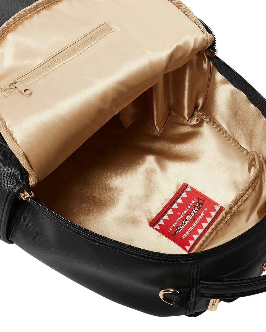 Dimensions: 18″ x 6″ x 11.5″ • Front zipper pocket • Side pockets • Zippered Stash pocket • Separate velour sunglass compartment • Ergonomic mesh back padding • Adjustable Straps for custom sizing • Gold zippers with metal hardware • Metal “Sprayground Authentic” badge • Slide through back sleeve connects to carry-on luggage to free your hands
