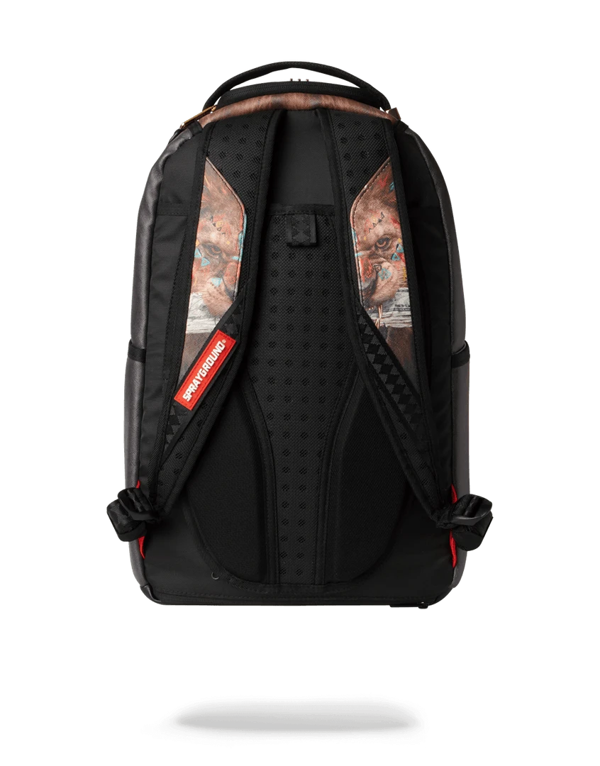 Dimensions: 18″ x 6″ x 11.5″ • Front zipper pocket • Side pockets • Zippered Stash pocket • Separate velour sunglass compartment • Ergonomic mesh back padding • Adjustable Straps for custom sizing • Gold claw and red fringe zippers with metal hardware • Metal “Sprayground Authentic” badge • Slide through back sleeve connects to carry-on luggage to free your hands
