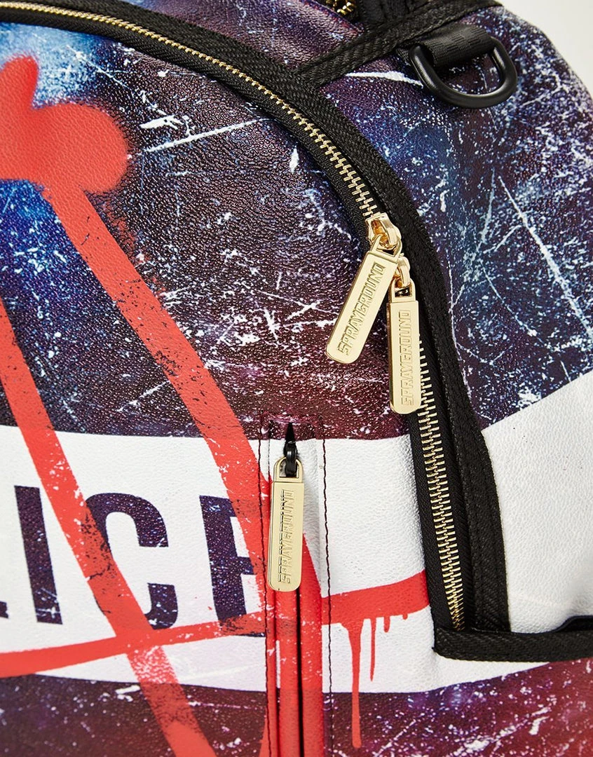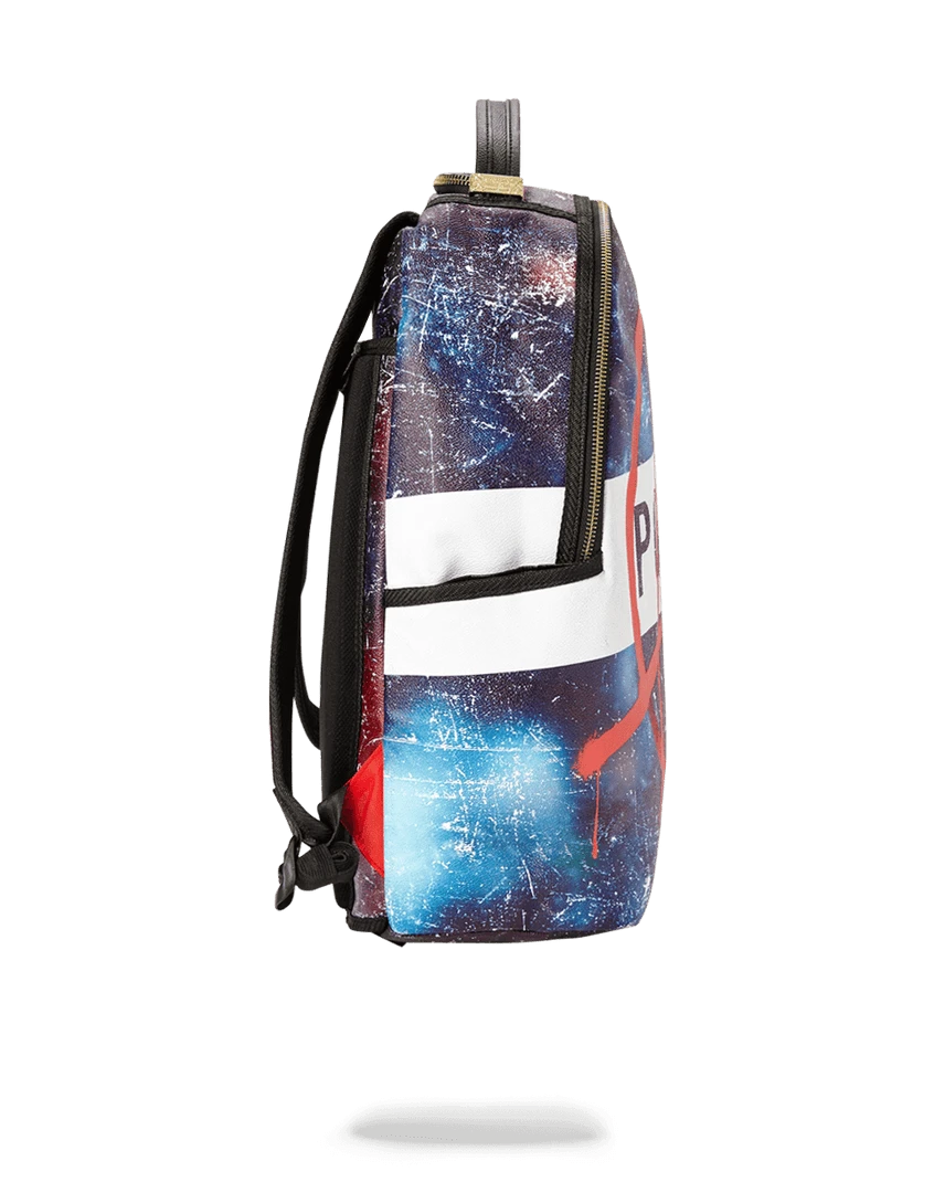 Dimensions: 18″ x 6″ x 11.5″ ∙ Front zipper pocket ∙ Side pockets ∙ Zippered Stash pocket ∙ Ergonomic mesh back padding ∙ Adjustable Straps for custom sizing ∙ Nylon Zippers with Metal Hardware ∙ Metal “Sprayground Authentic” badge ∙ Slide through back sleeve connects to Carry on luggage to free your hands