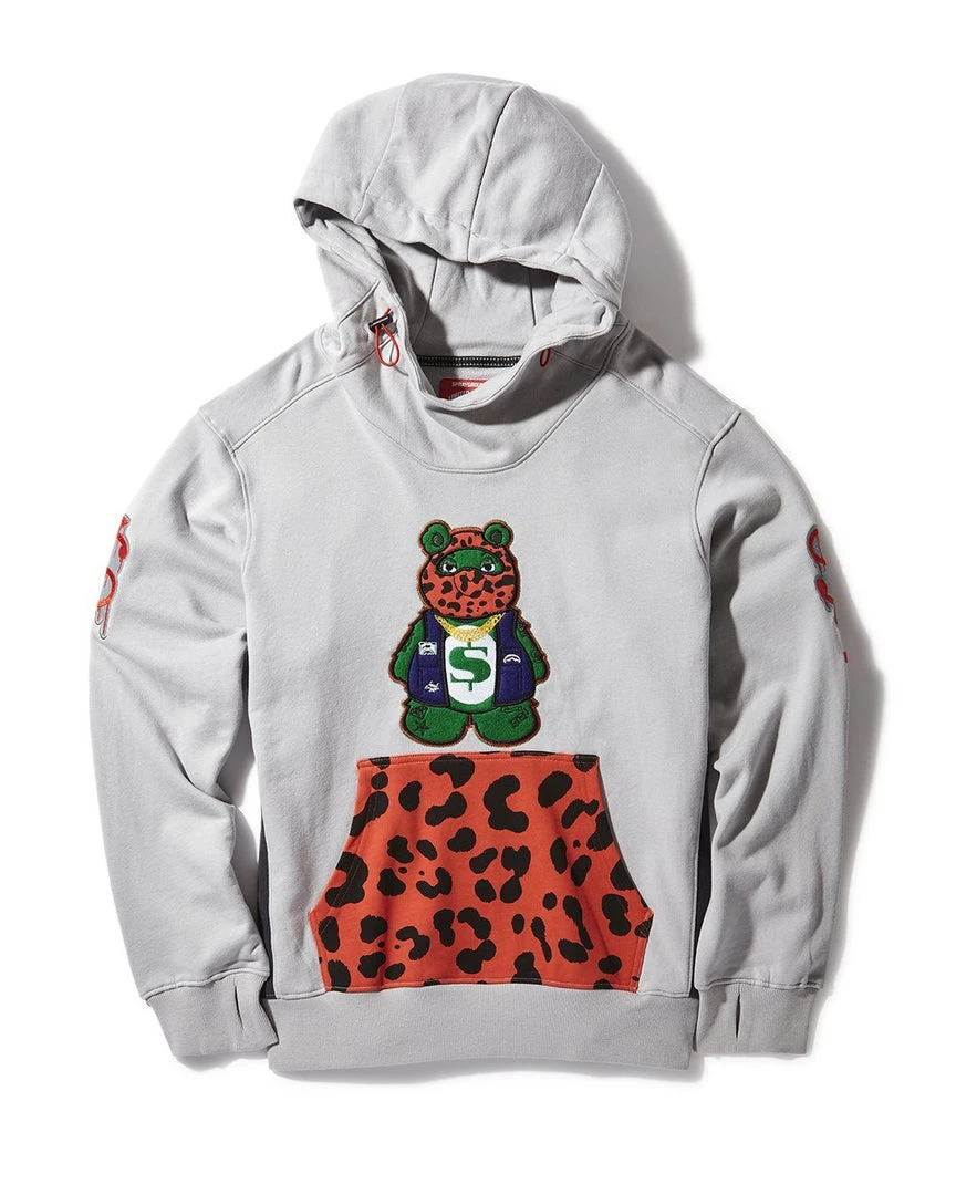 Offset Sprayground Money Bear applique with embroidery at center front & wearer’s sleeves