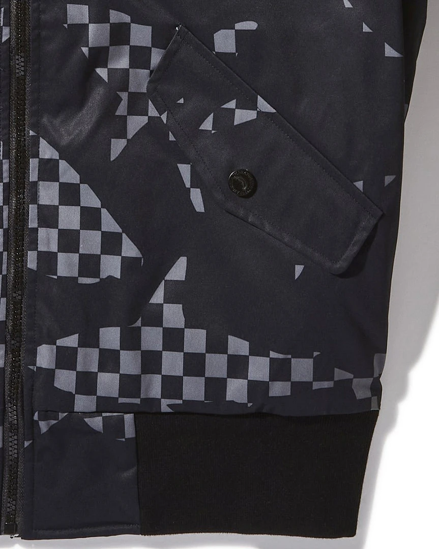 Bellow cargo pocket with zipper closure at wearer’s left sleeve bicep