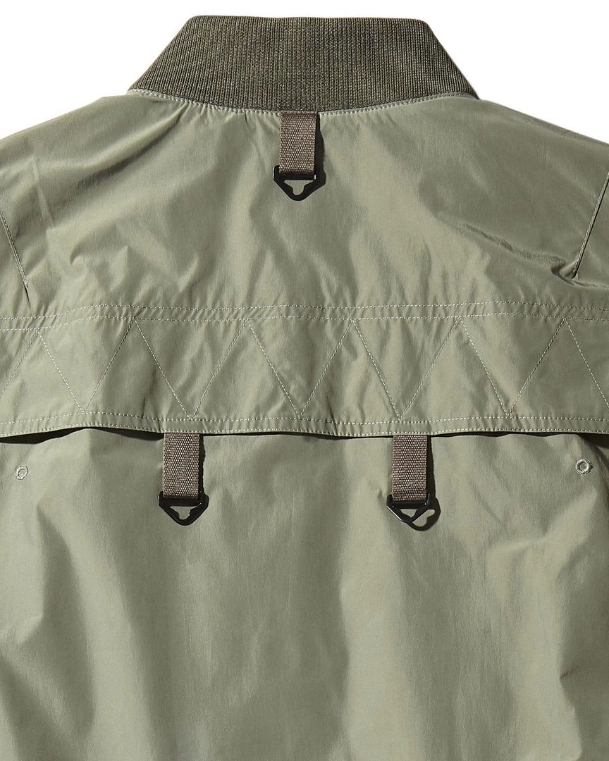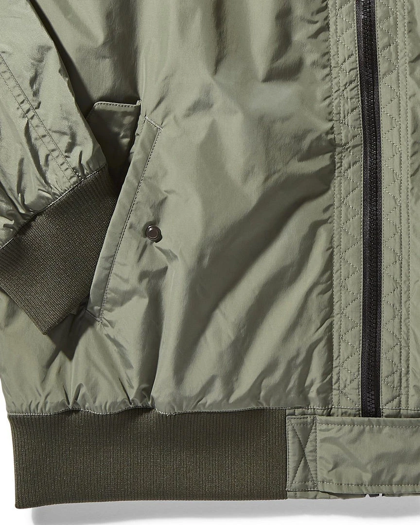 Vertical pocket with bonded zipper closure at wearer’s left front chest