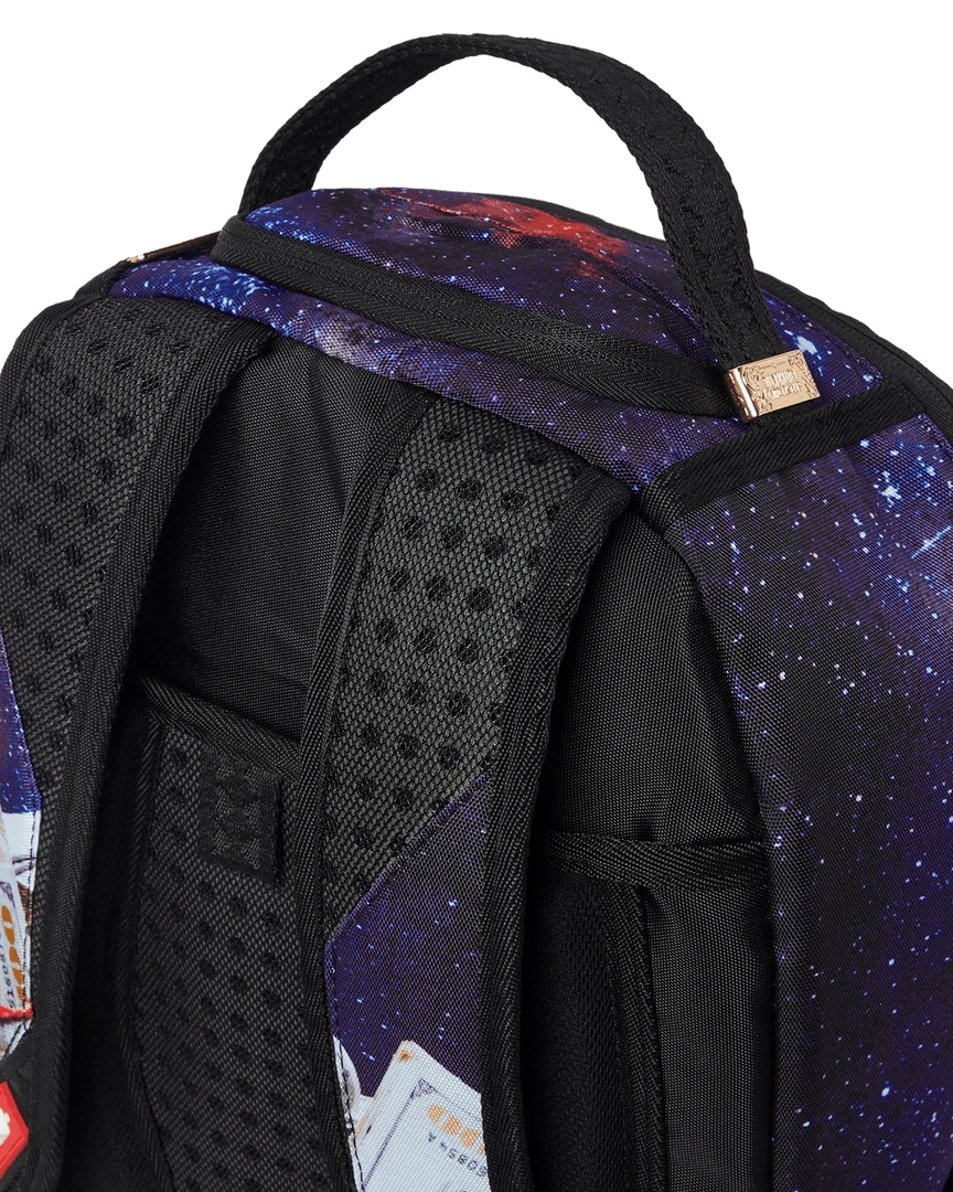 Dimensions: 18″ x 6″ x 11.5″ ∙ Front zipper pocket ∙ Side pockets ∙ Zippered Stash pocket ∙ Ergonomic mesh back padding ∙ Adjustable Straps for custom sizing ∙ Nylon Zippers with Metal Hardware ∙ Metal “Sprayground Authentic” badge ∙ Slide through back sleeve connects to Carry on luggage to free your hands