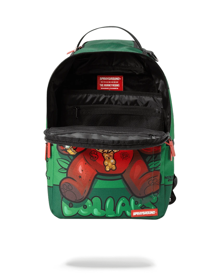 Dimensions: 18″ x 6″ x 11.5″ ∙ Front zipper pocket ∙ Side pockets ∙ Zippered Stash pocket ∙ Ergonomic mesh back padding ∙ Adjustable Straps for custom sizing ∙ Nylon Zippers with Metal Hardware ∙ Metal “Sprayground Authentic” badge ∙ Slide through back sleeve connects to Carry on luggage to free your hands
