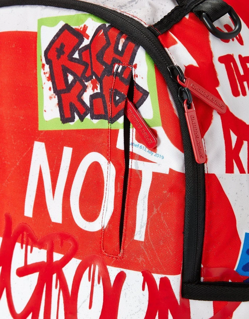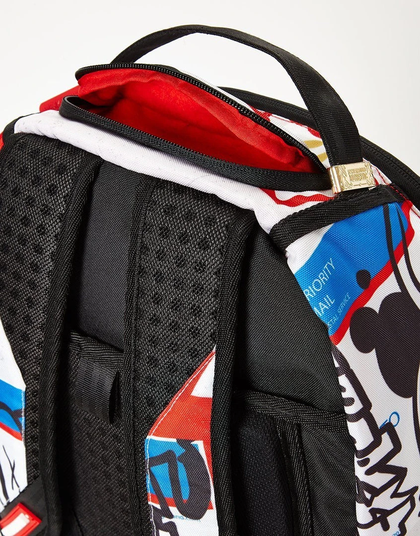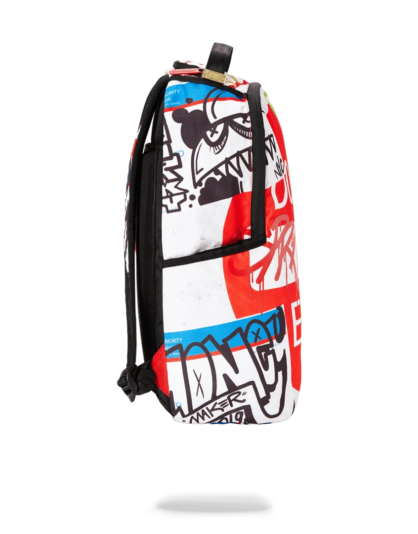 Dimensions: 18″ x 6″ x 11.5″ ∙ Front zipper pocket ∙ Side pockets ∙ Zippered Stash pocket ∙ Ergonomic mesh back padding ∙ Adjustable Straps for custom sizing ∙ Nylon Zippers with Metal Hardware ∙ Metal “Sprayground Authentic” badge ∙ Slide through back sleeve connects to Carry on luggage to free your hands
