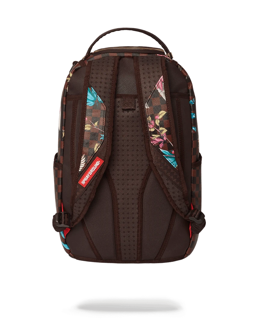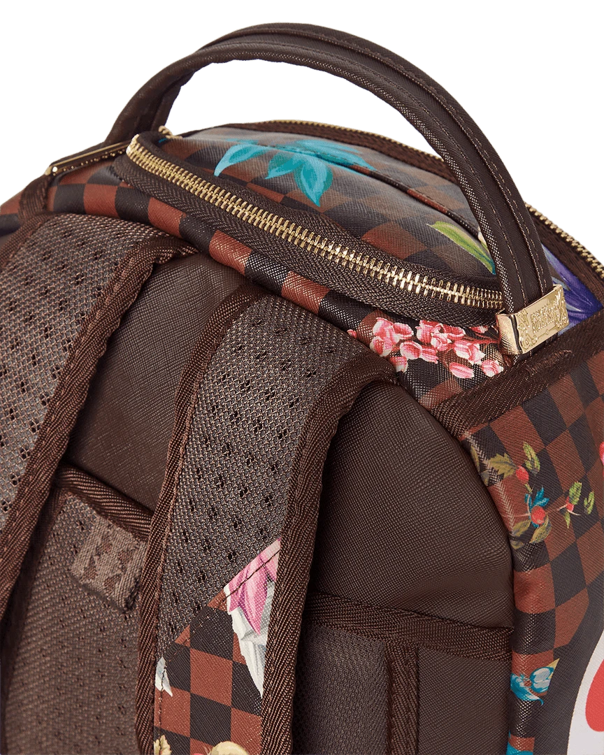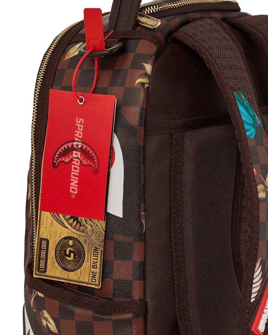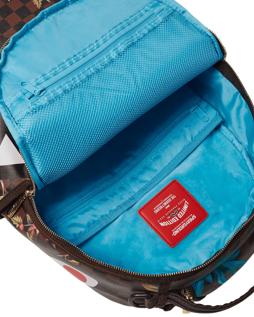 Dimensions: 18″ x 6″ x 11.5″ • Front zipper pocket • Side pockets • Zippered Stash pocket • Separate velour sunglass compartment • Ergonomic mesh back padding • Adjustable Straps for custom sizing • Gold zippers with metal hardware • Metal “Sprayground Authentic” badge • Slide through back sleeve connects to carry-on luggage to free your hands