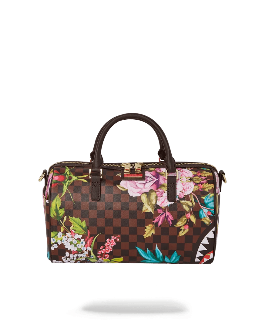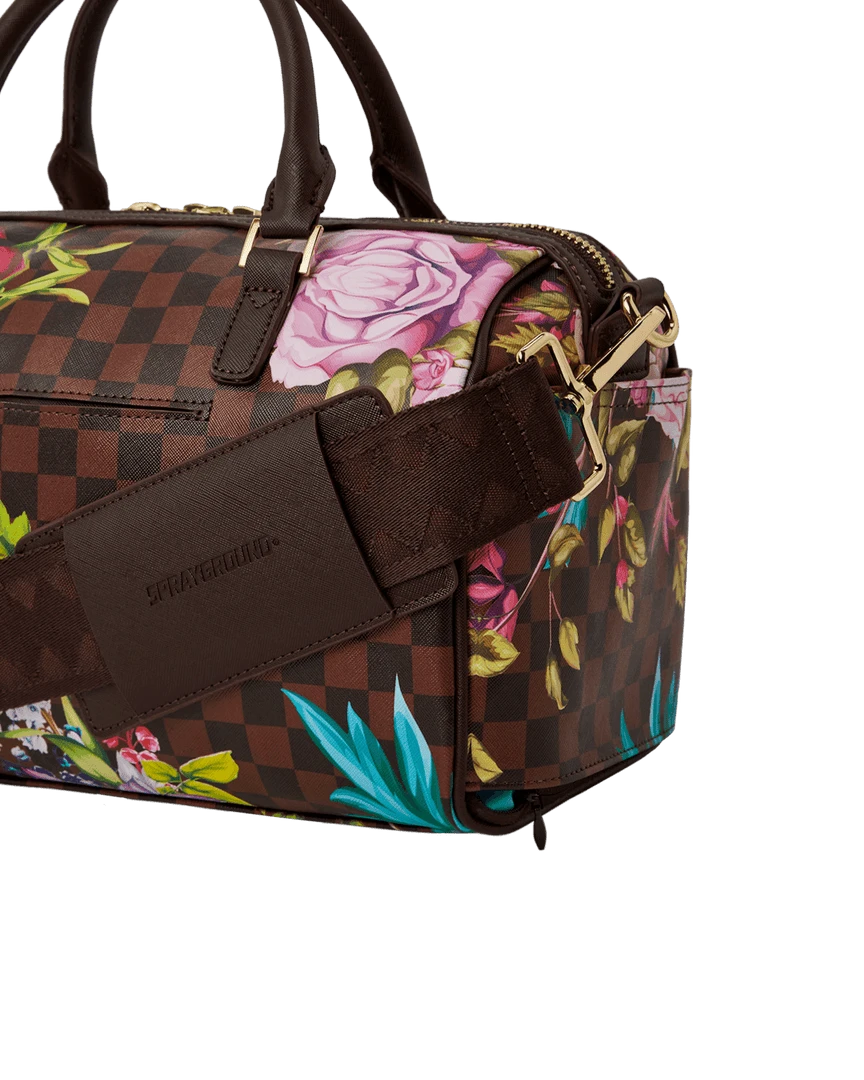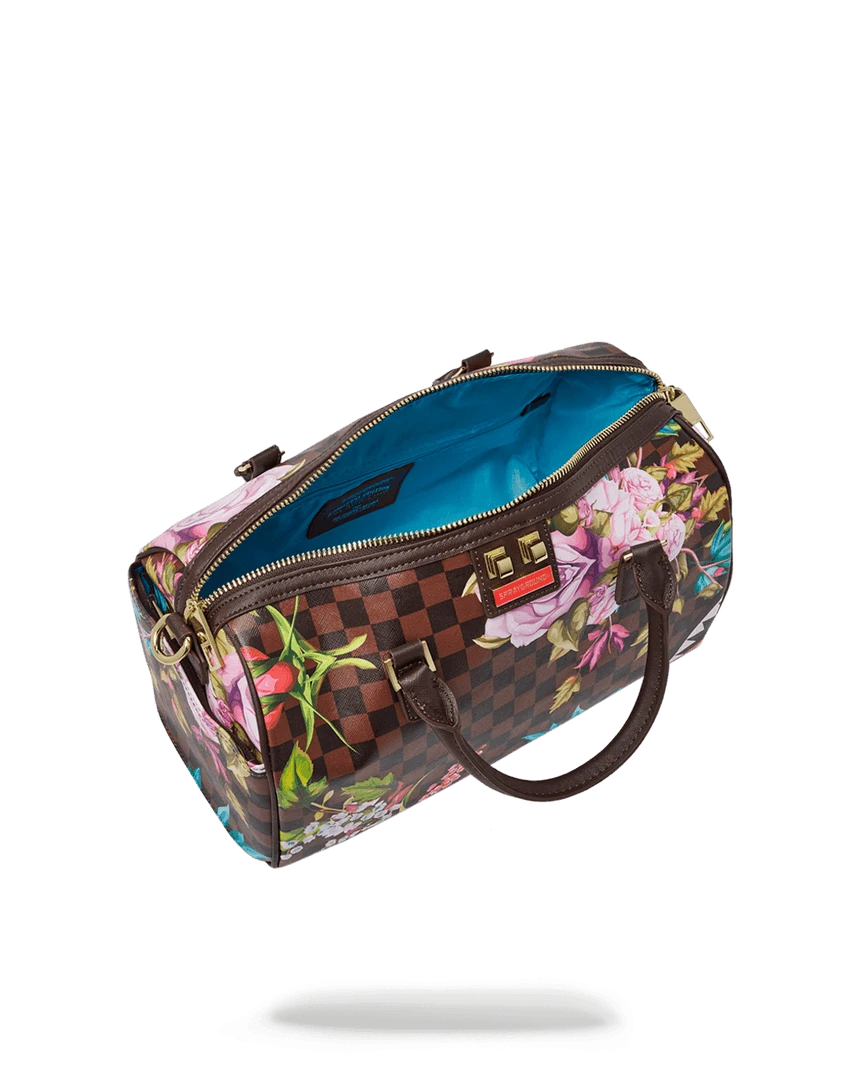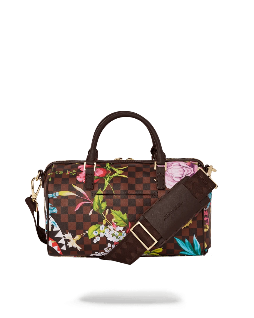 Dimensions: 8″ x 7.5″ x 13″ • Zippered top opening • Zippered pocket on back panel • Zippered side pocket • Removable adjustable strap for custom sizing with reinforced crossbody construction • Logo embossed shoulder pad for comfort • Gold zippers with metal hardware • Zippered stash pocket