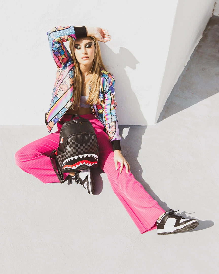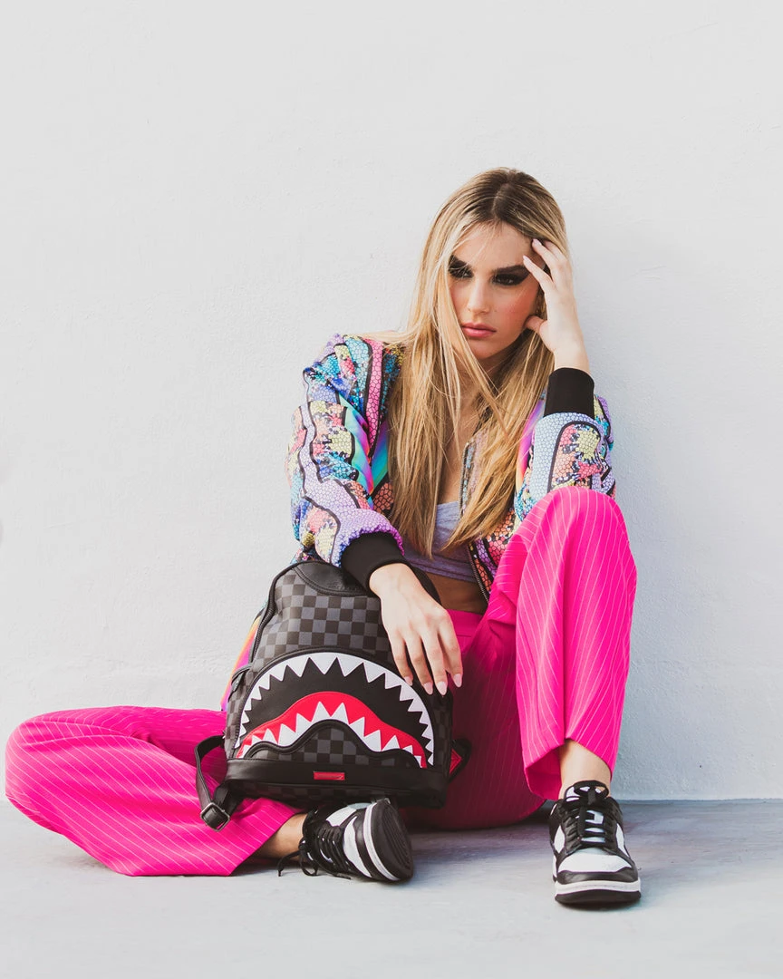 Dimensions: 10″ x 5″ x 11.5″ • Two large main zippered compartments • Side pockets • Zippered Stash pocket • Adjustable straps for custom sizing • Gold zippers with metal hardware