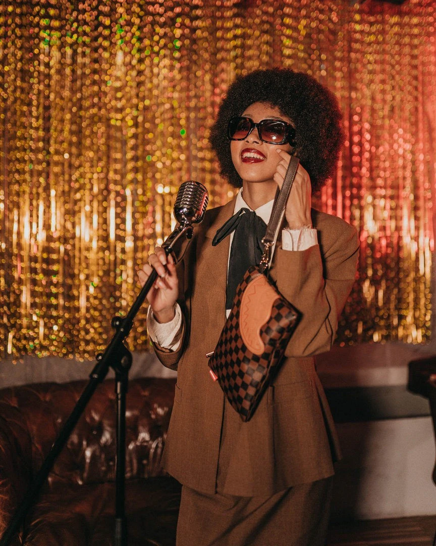 Pouch with removable wristlet strap, Handle on front panel, Zip Closure, secret stash pocket on side seam