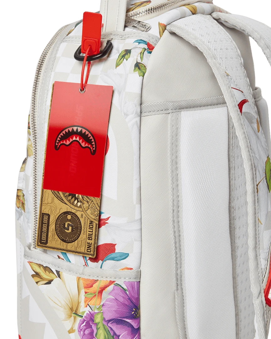 Dimensions: 18″ x 6″ x 11.5″ • Front zipper pocket • Side pockets • Zippered Stash pocket • Separate velour sunglass compartment • Ergonomic mesh back padding • Adjustable Straps for custom sizing • Gold zippers with metal hardware • Metal “Sprayground Authentic” badge • Slide through back sleeve connects to carry-on luggage to free your hands