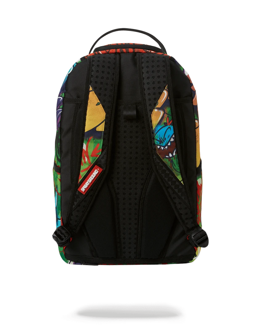 Dimensions: 18″ x 6″ x 11.5″ • Front zipper pocket • Side pockets • Zippered Stash pocket • Separate velour sunglass compartment • Ergonomic mesh back padding • Adjustable Straps for custom sizing • Green zippers with metal hardware • Metal “Sprayground Authentic” badge • Slide through back sleeve connects to carry-on luggage to free your hands