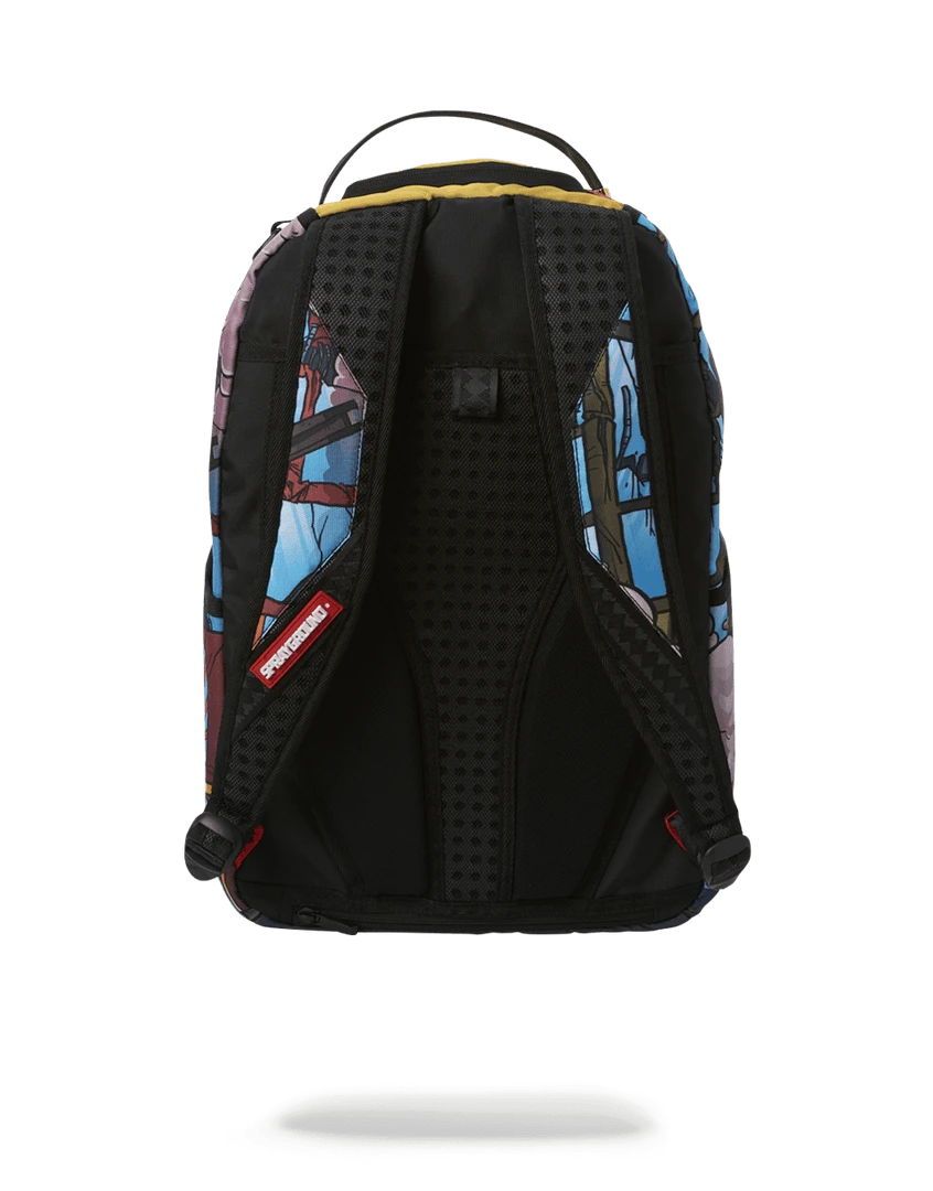 Dimensions: 18″ x 6″ x 11.5″ • Front zipper pocket • Side pockets • Zippered Stash pocket • Separate velour sunglass compartment • Ergonomic mesh back padding • Adjustable Straps for custom sizing • Yellow green zippers with metal hardware • Metal “Sprayground Authentic” badge • Slide through back sleeve connects to carry-on luggage to free your hands