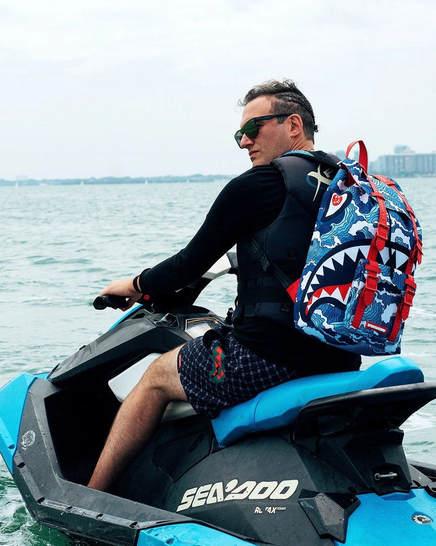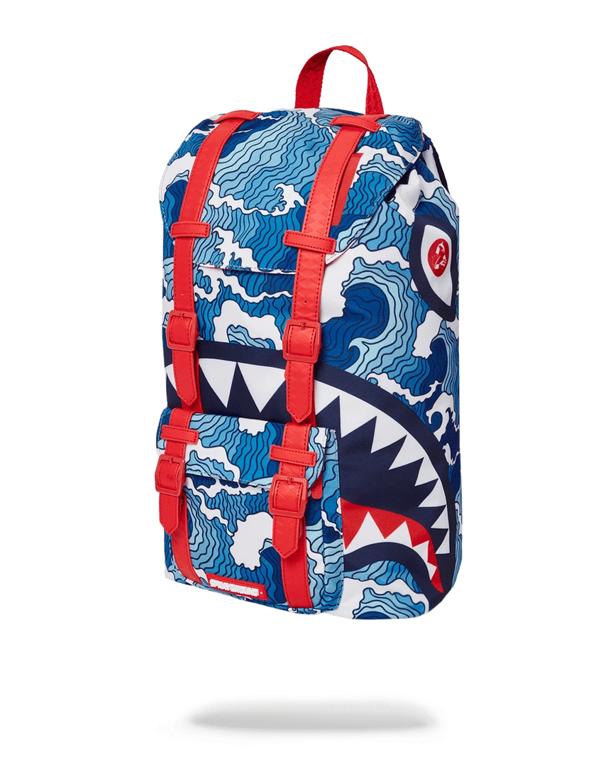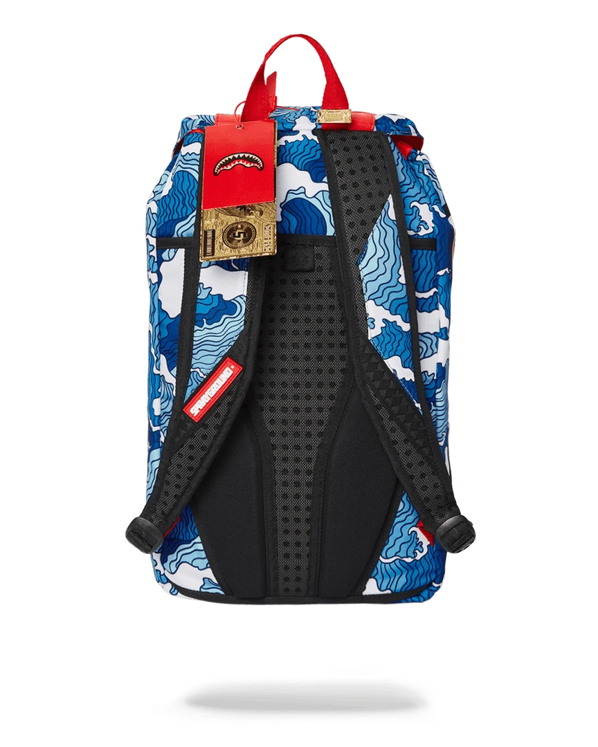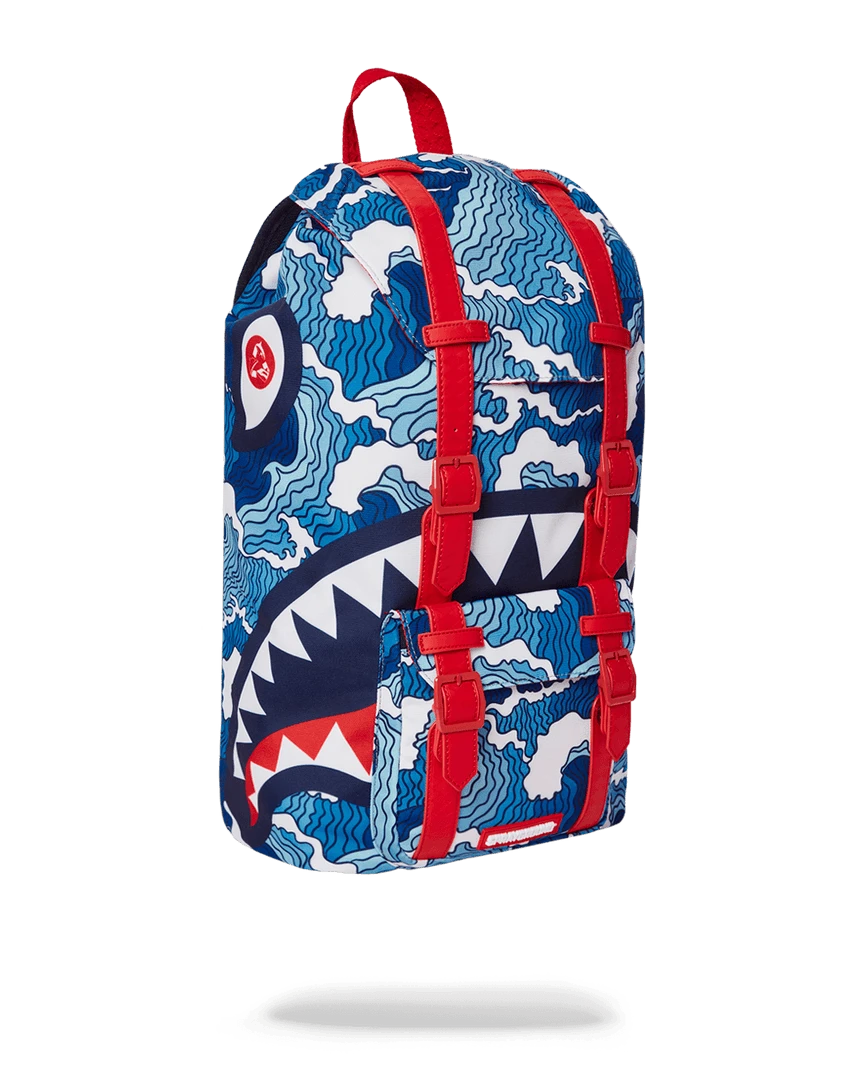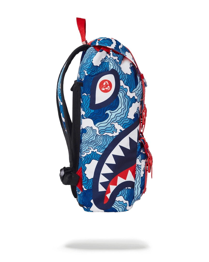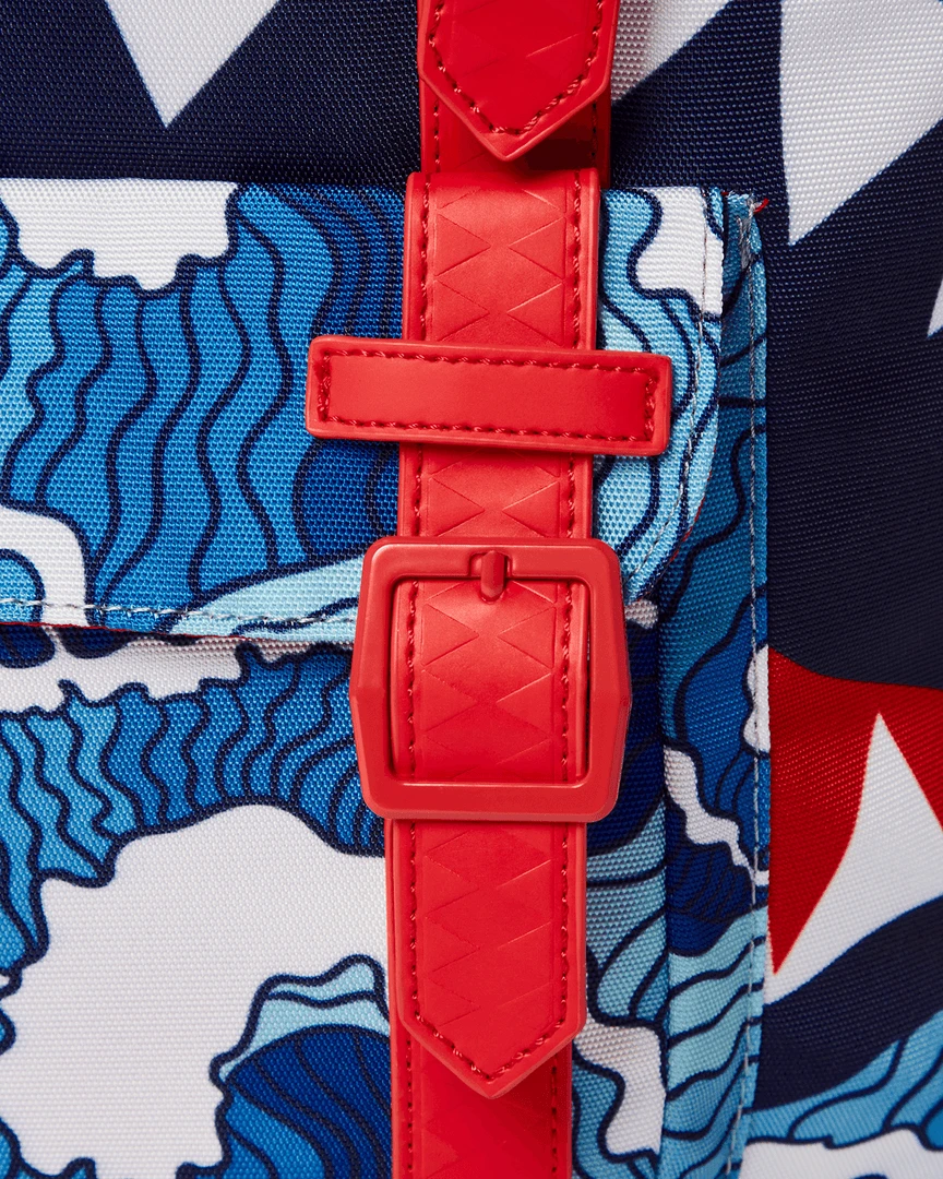 Dimensions: 20.5″ x 5″ x 11.5″ • Top Flap opening w/ adjustable magnetic snap buckle closure • Draw-string closure • Front pocket with adjustable magnetic snap buckle closure • Ergonomic mesh back padding • Adjustable straps for custom sizing • Nylon zippers with metal hardware • Embossed sharkteeth straps • Slide through back sleeve connects to carry-on luggage to free your hands