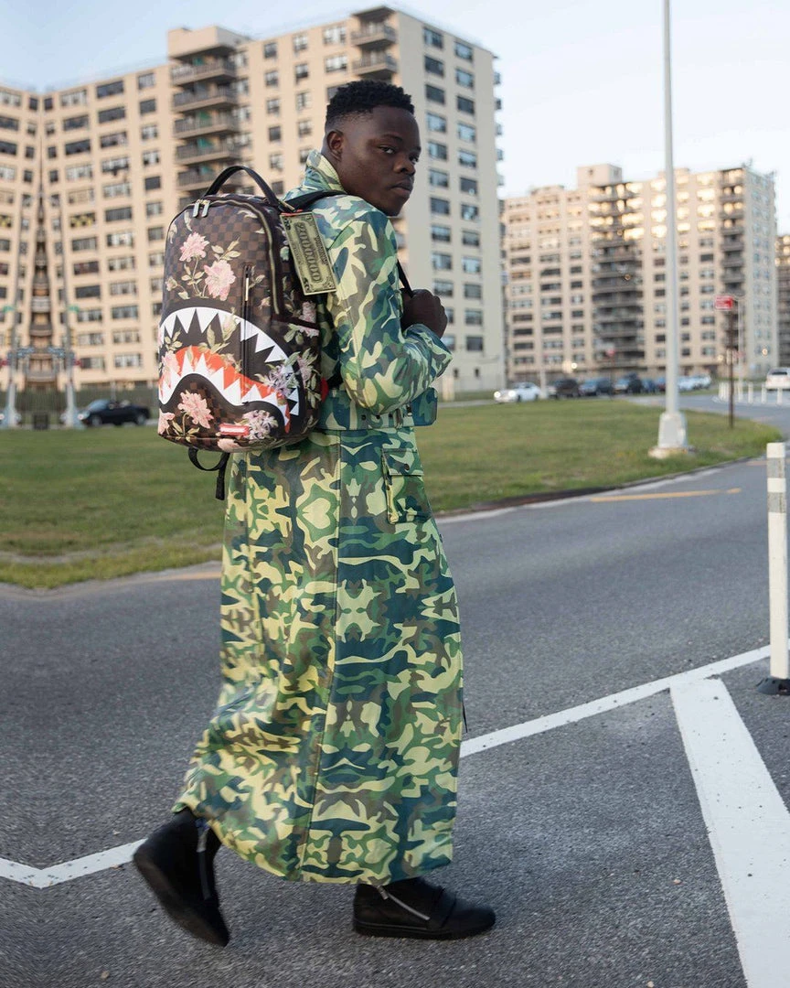 Dimensions: 18″ x 6″ x 11.5″ • Front zipper pocket • Side pockets • Zippered Stash pocket • Separate velour sunglass compartment • Ergonomic mesh back padding • Adjustable Straps for custom sizing • Gold zippers with metal hardware • Metal “Sprayground Authentic” badge • Slide through back sleeve connects to carry-on luggage to free your hands
