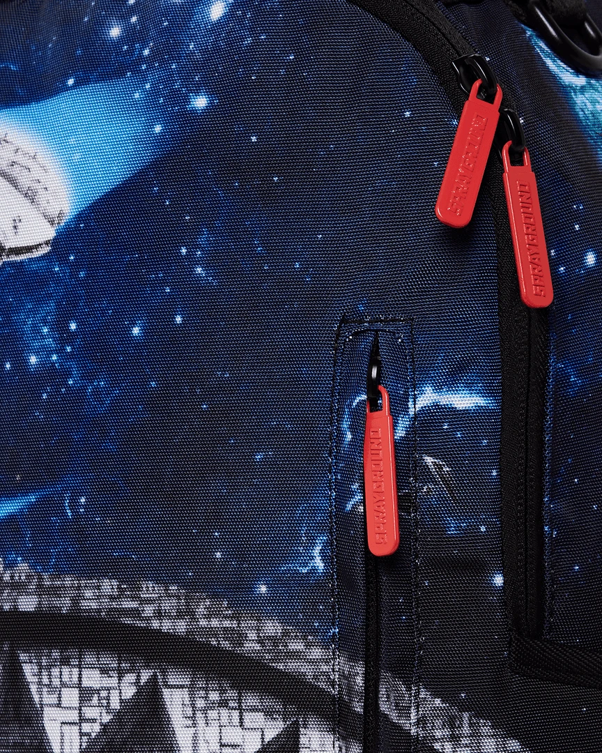 Dimensions: 18″ x 6″ x 11.5″ • Front zipper pocket • Side pockets • Zippered Stash pocket • Separate velour sunglass compartment • Ergonomic mesh back padding • Adjustable Straps for custom sizing • Gold zippers with metal hardware • Metal “Sprayground Authentic” badge • Slide through back sleeve connects to carry-on luggage to free your hands