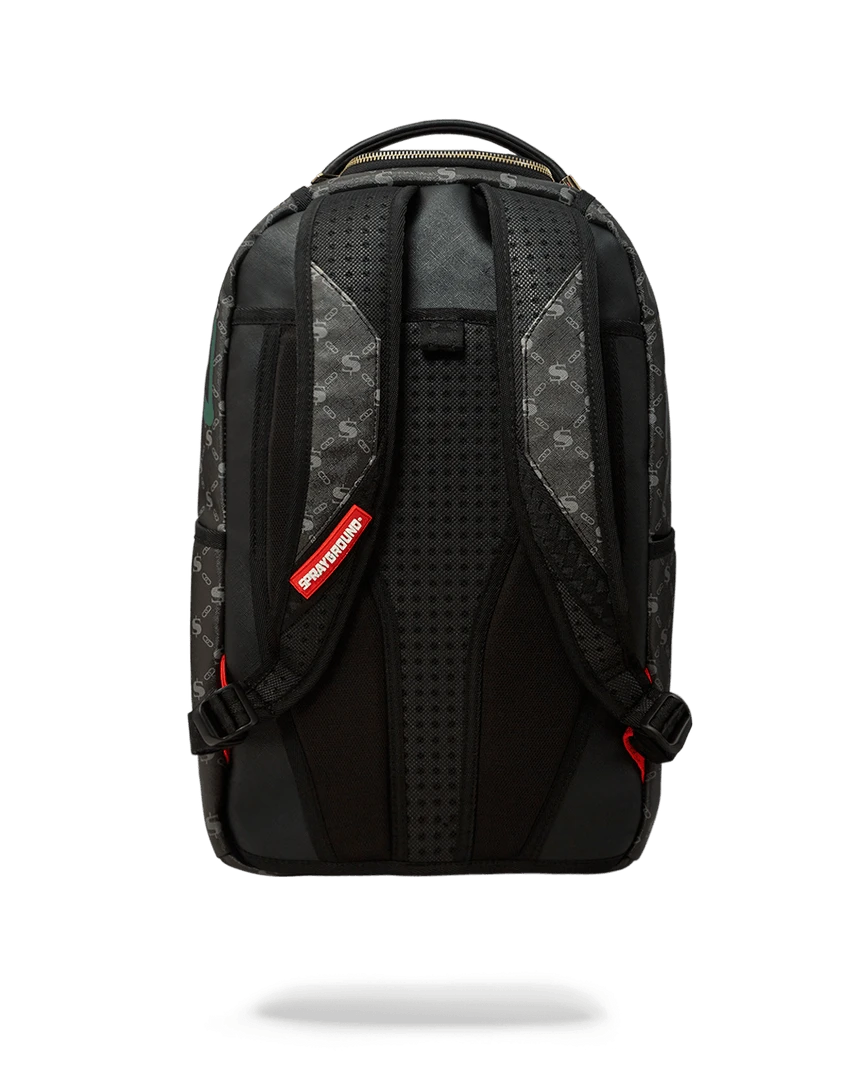 Dimensions: 18″ x 6″ x 11.5″ • Front zipper pocket • Side pockets • Zippered Stash pocket • Separate velour sunglass compartment • Ergonomic mesh back padding • Adjustable Straps for custom sizing • Red zippers with metal hardware • Metal “Sprayground Authentic” badge • Slide through back sleeve connects to carry-on luggage to free your hands