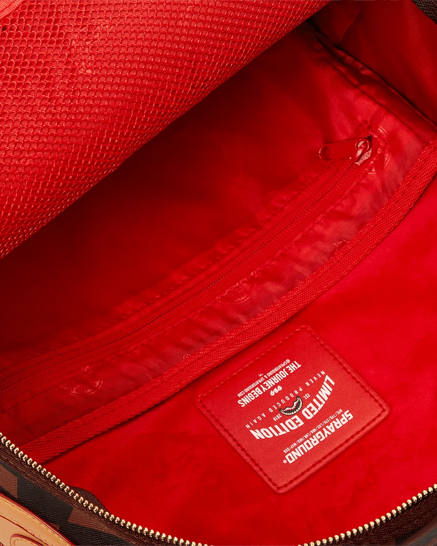 Dimensions: 18″ x 6″ x 11.5″ • Front zipper pocket • Side pockets • Zippered Stash pocket • Separate velour sunglass compartment • Ergonomic mesh back padding • Adjustable Straps for custom sizing • Gold zippers with metal hardware • Metal “Sprayground Authentic” badge • Slide through back sleeve connects to carry-on luggage to free your hands
