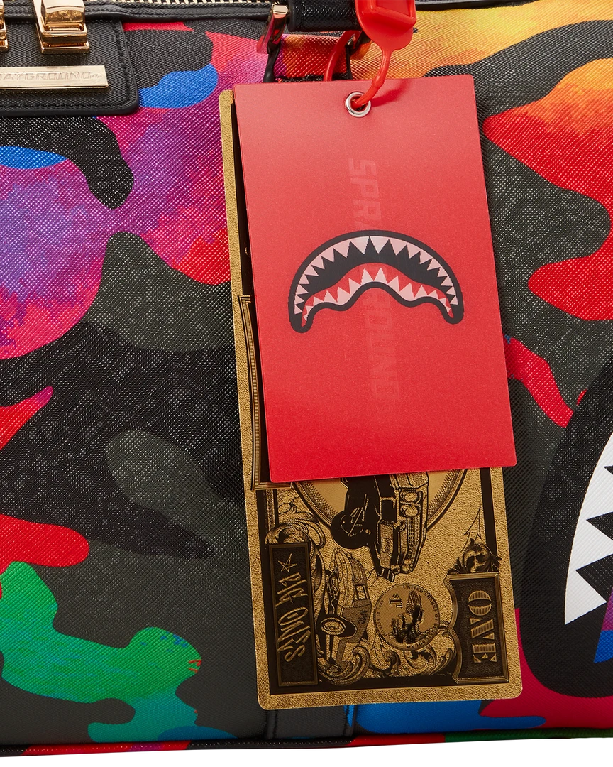 Dimensions: 8″ x 7.5″ x 13″ • Metal zipper pocket• Back Zippers •Zippered sneaker pocket • gold zippers • Adjustable Straps for custom sizing •Metal Zippers with Metal Hardware • bag of Sprayground money