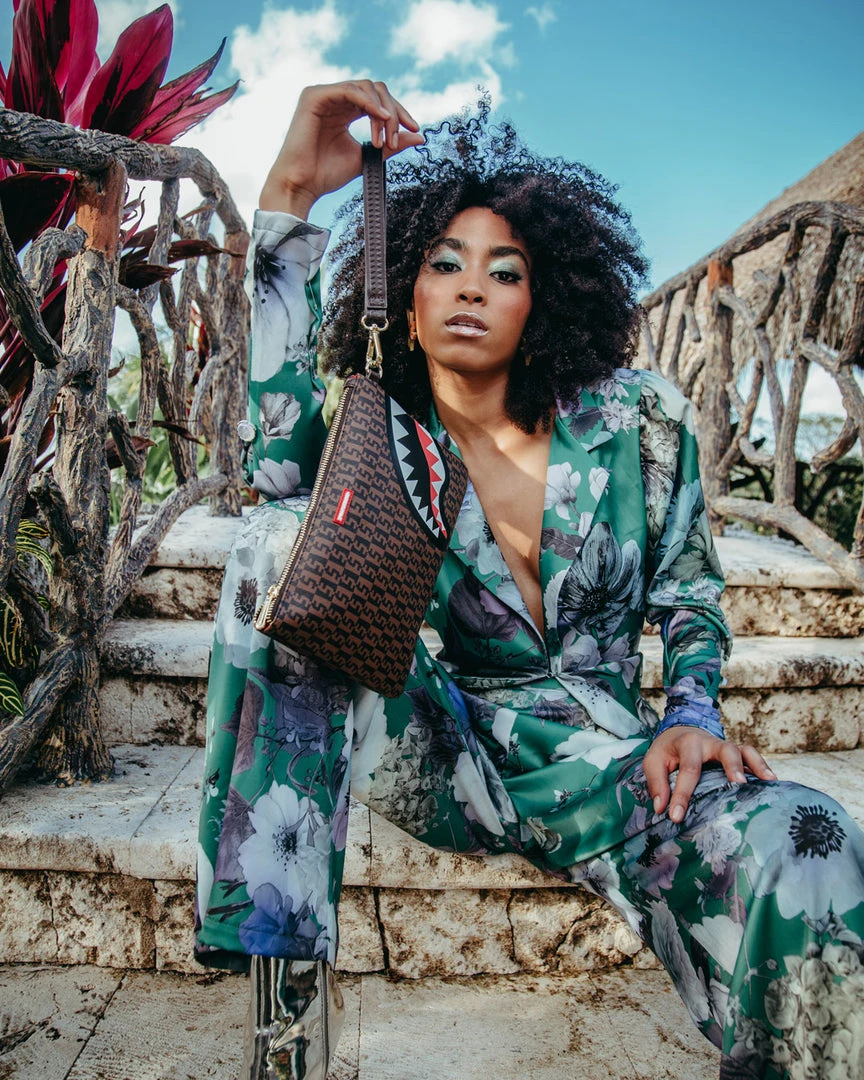 Pouch with removable wristlet strap, Handle on front panel, Zip Closure, secret stash pocket on side seam