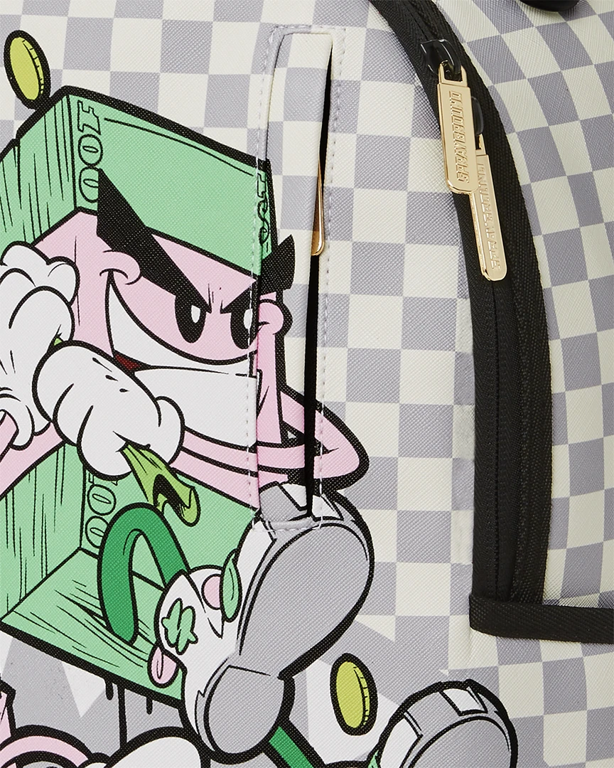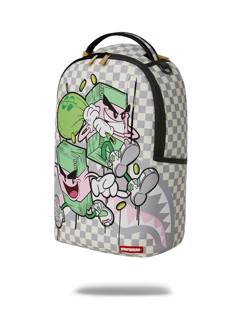 Dimensions: 18″ x 6″ x 11.5″ • Front zipper pocket • Side pockets • Zippered Stash pocket • Separate velour sunglass compartment • Ergonomic mesh back padding • Adjustable Straps for custom sizing • Gold zippers with metal hardware • Metal “Sprayground Authentic” badge • Slide through back sleeve connects to carry-on luggage to free your hands