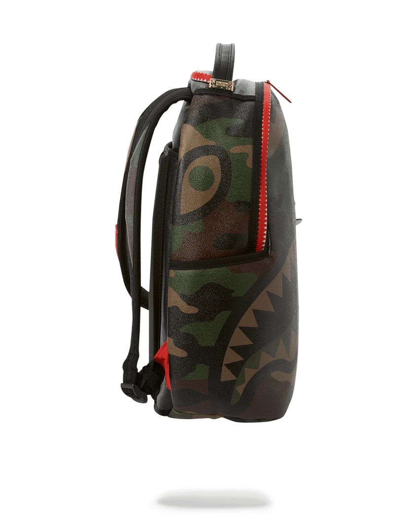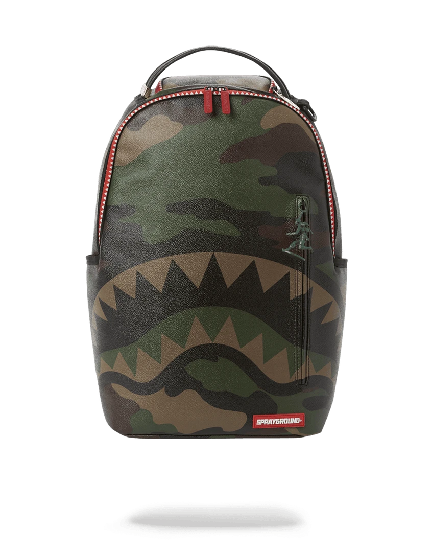 Dimensions: 18″ x 6″ x 11.5″ • Front zipper pocket • Side pockets • Zippered Stash pocket • Separate velour sunglass compartment • Ergonomic mesh back padding • Adjustable Straps for custom sizing • Red, gold and army man zippers with metal hardware • Metal “Sprayground Authentic” badge • Slide through back sleeve connects to carry-on luggage to free your hands