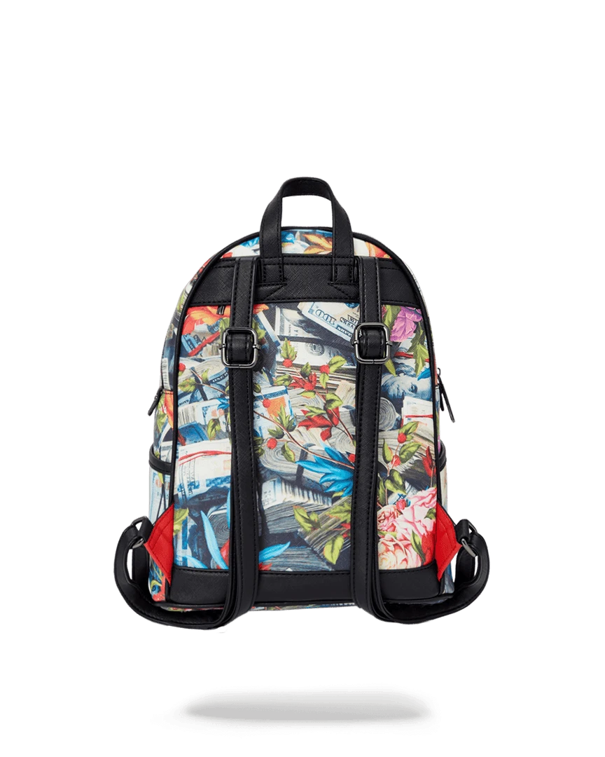 Dimensions: 10″ x 5″ x 11.5″ • Two large main zippered compartments • Side pockets • Zippered Stash pocket • Adjustable straps for custom sizing • Gold zippers with metal hardware