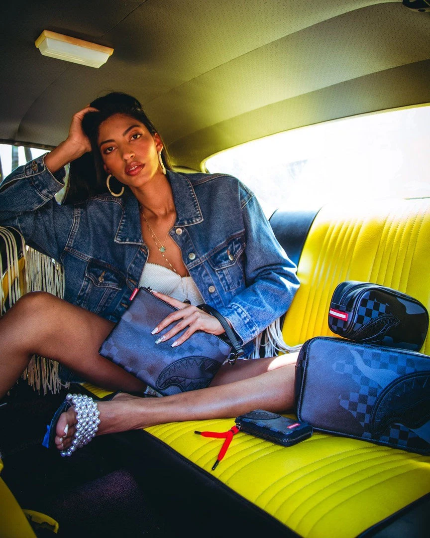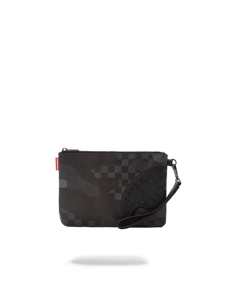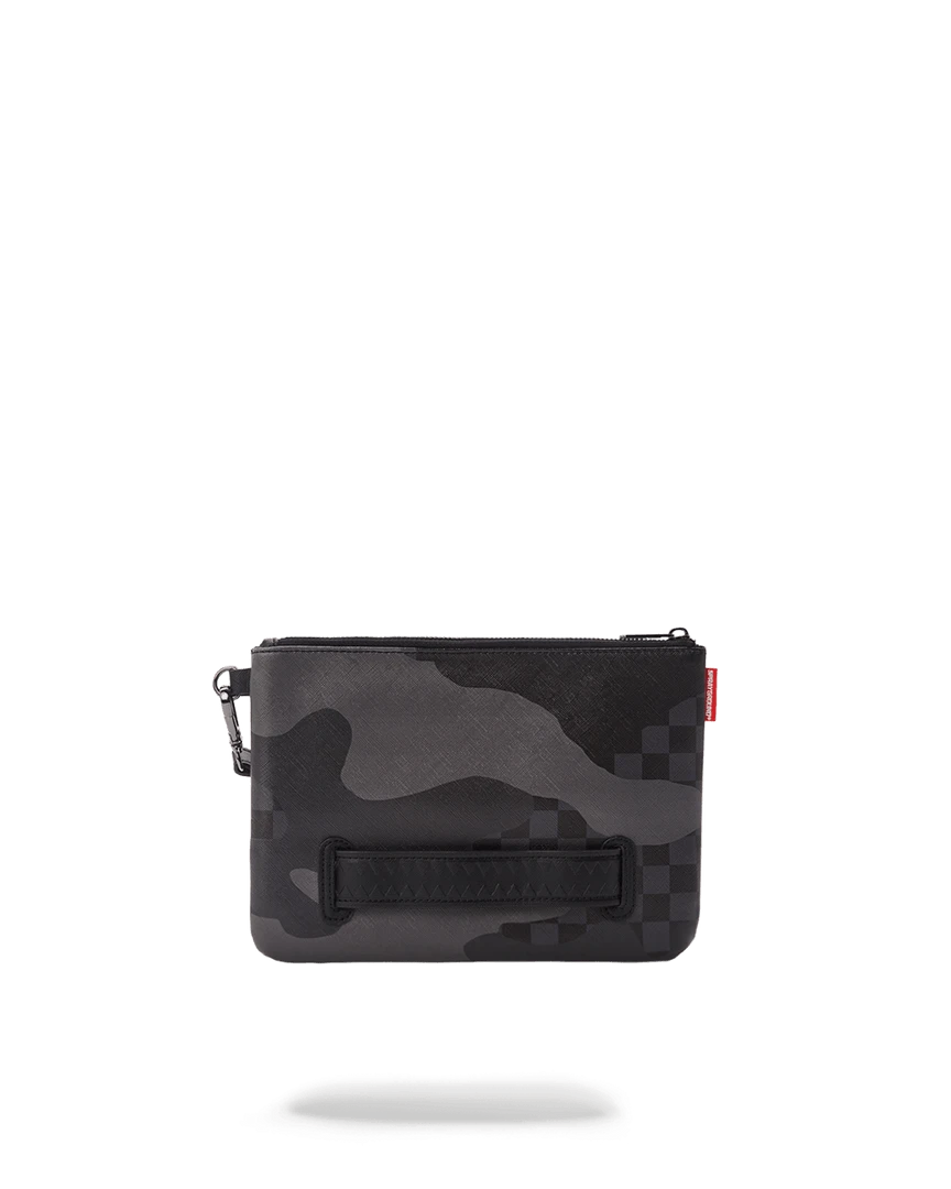 Pouch with removable wristlet strap, Handle on front panel, Zip Closure, secret stash pocket on side seam
