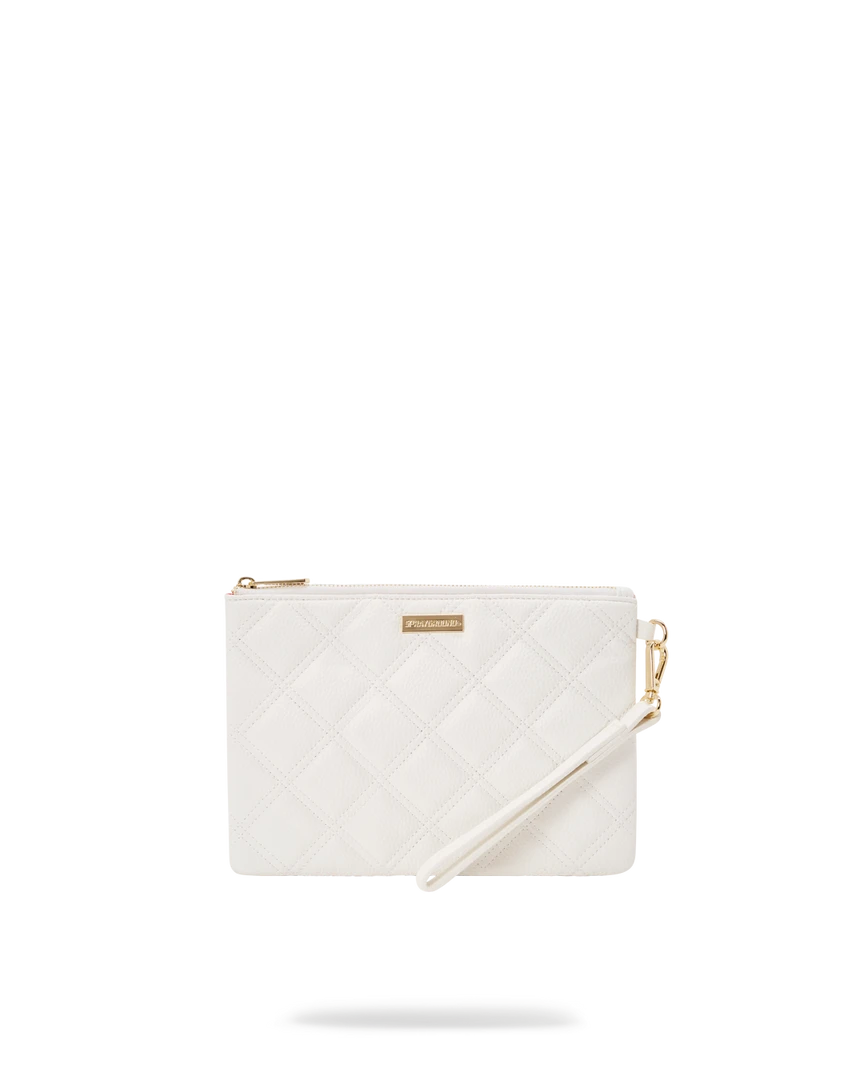 Pouch with removable wristlet strap, Handle on front panel, Zip Closure, secret stash pocket on side seam