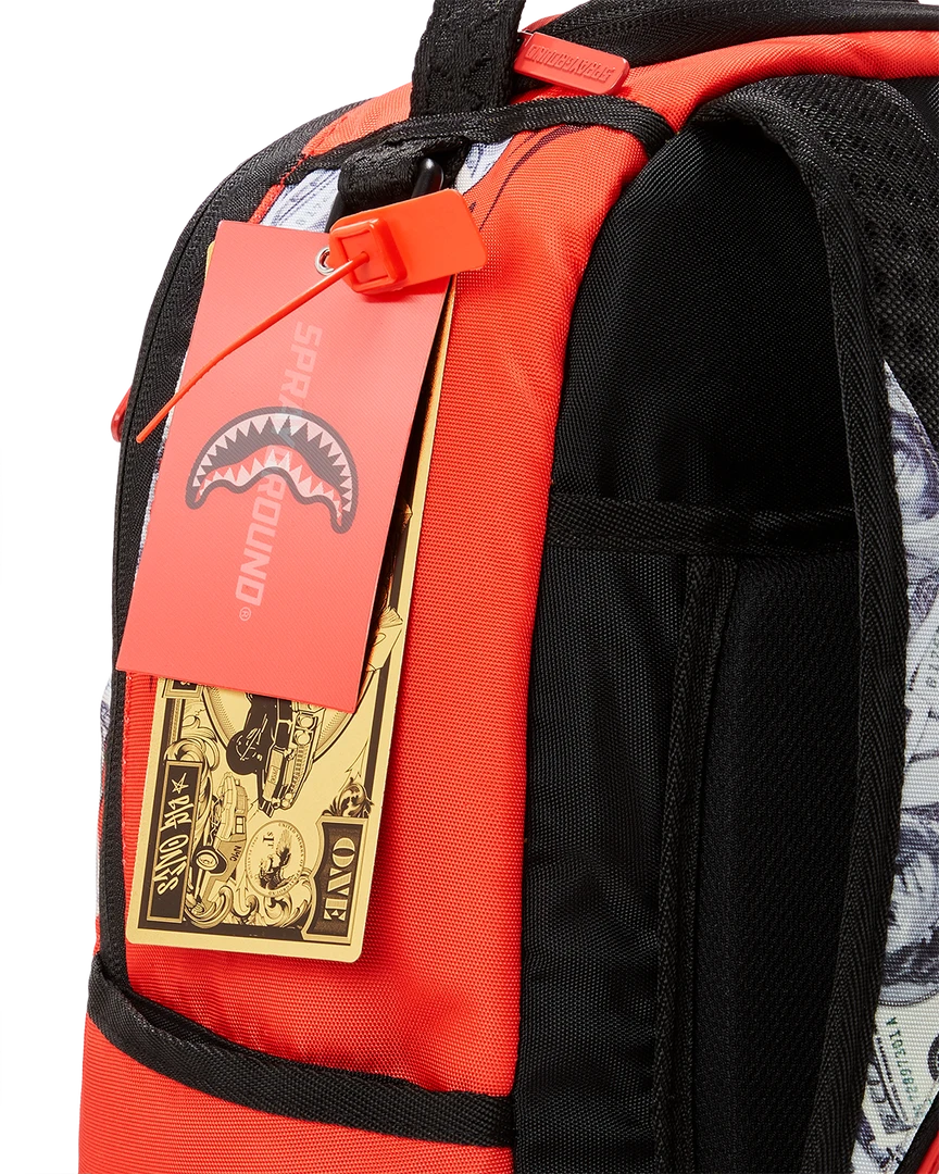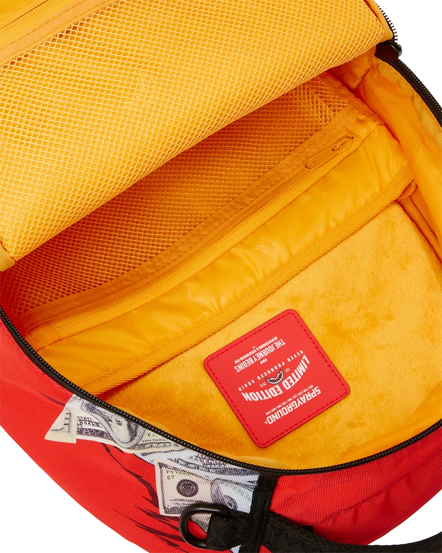 Dimensions: 18″ x 6″ x 11.5″ • Front zipper pocket • Side pockets • Zippered Stash pocket • Separate velour sunglass compartment • Ergonomic mesh back padding • Adjustable Straps for custom sizing • Green zippers with metal hardware • Metal “Sprayground Authentic” badge • Slide through back sleeve connects to carry on luggage to free your hands