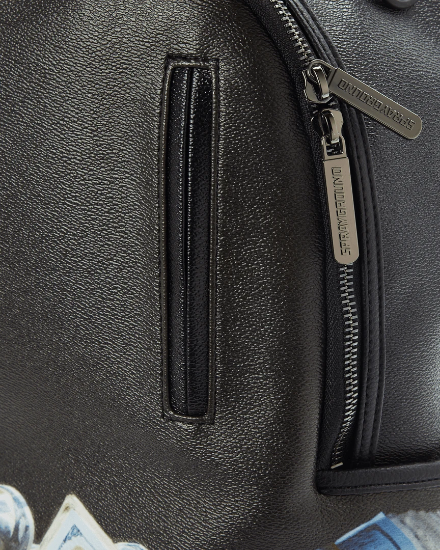 Dimensions: 18″ x 6″ x 11.5″ • Front zipper pocket • Side pockets • Zippered Stash pocket • Separate velour sunglass compartment • Ergonomic mesh back padding • Adjustable Straps for custom sizing • Gold zippers with metal hardware • Metal “Sprayground Authentic” badge • Slide through back sleeve connects to carry-on luggage to free your hands