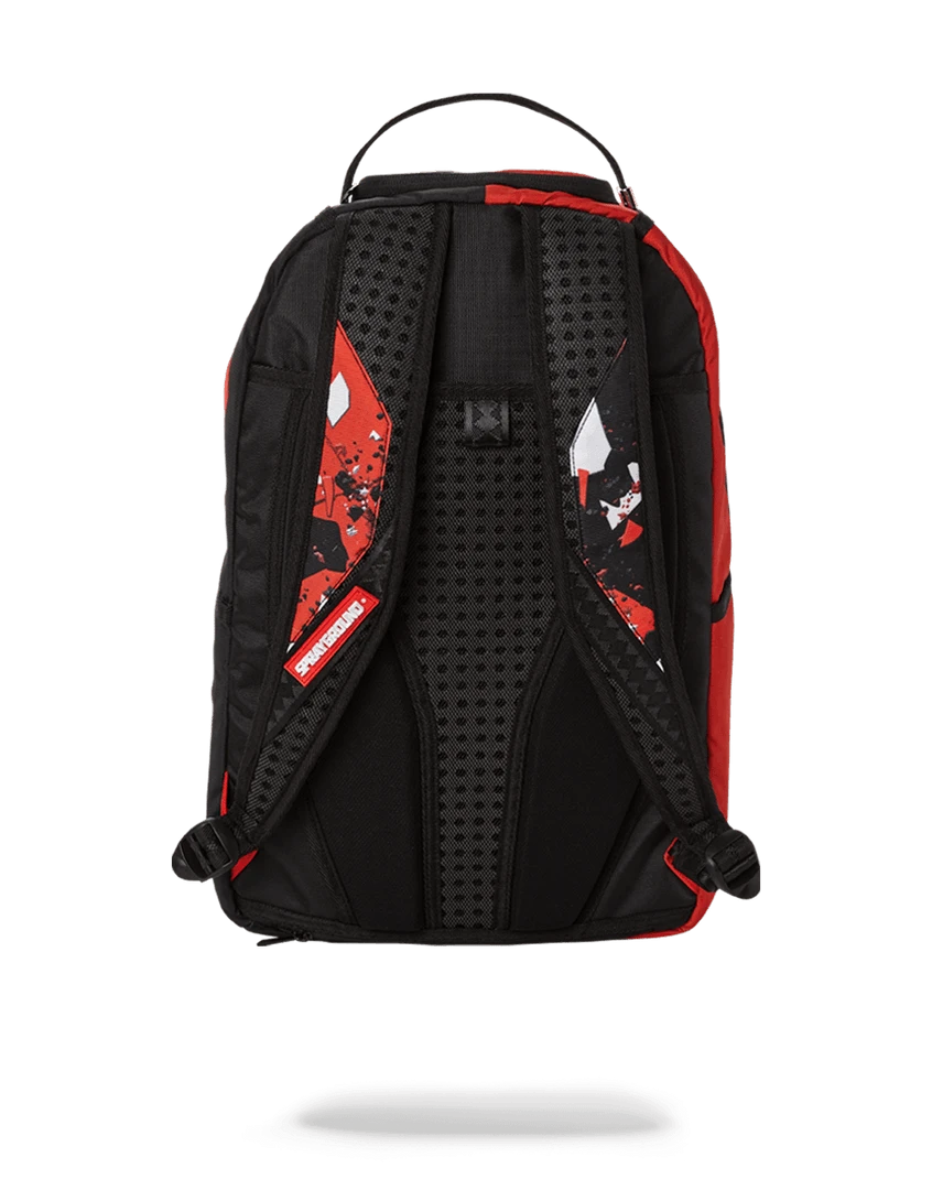 Dimensions: 18″ x 6″ x 11.5″ • Front zipper pocket • Side pockets • Zippered Stash pocket • Separate velour sunglass compartment • Ergonomic mesh back padding • Adjustable Straps for custom sizing • Red and black zippers with metal hardware • Metal “Sprayground Authentic” badge • Slide through back sleeve connects to carry-on luggage to free your hands
