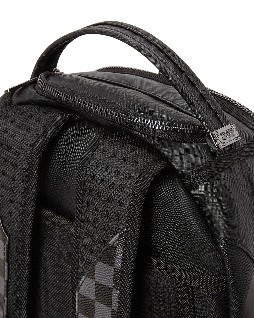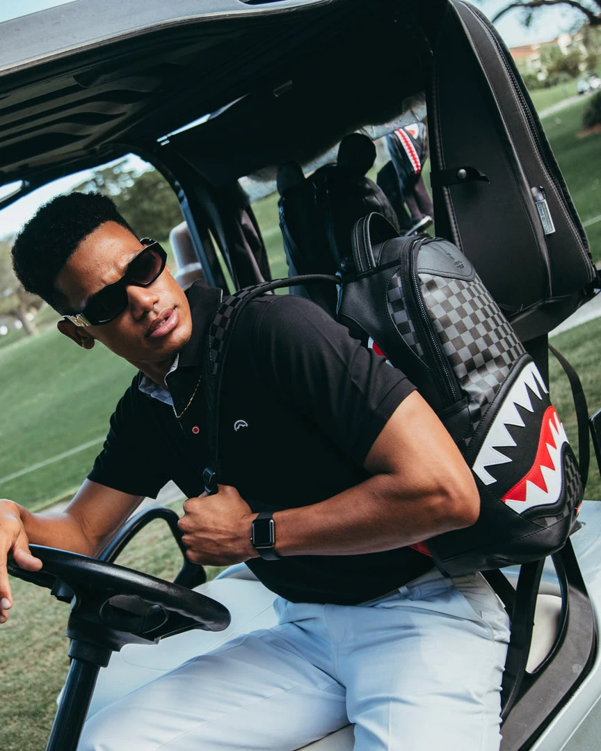 Dimensions: 18″ x 6″ x 11.5″ • Front zipper pocket • Side pockets • Zippered Stash pocket • Separate velour sunglass compartment • Ergonomic mesh back padding • Adjustable Straps for custom sizing • Gold zippers with metal hardware • Metal “Sprayground Authentic” badge • Slide through back sleeve connects to carry-on luggage to free your hands