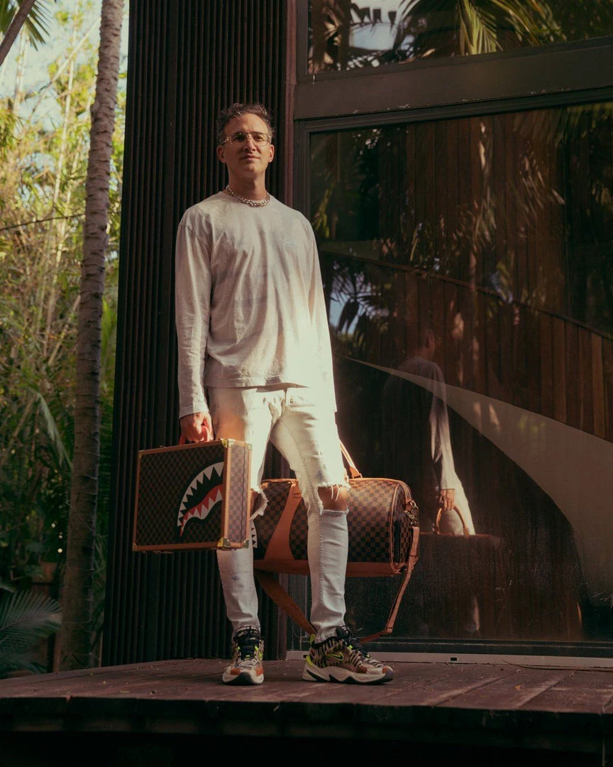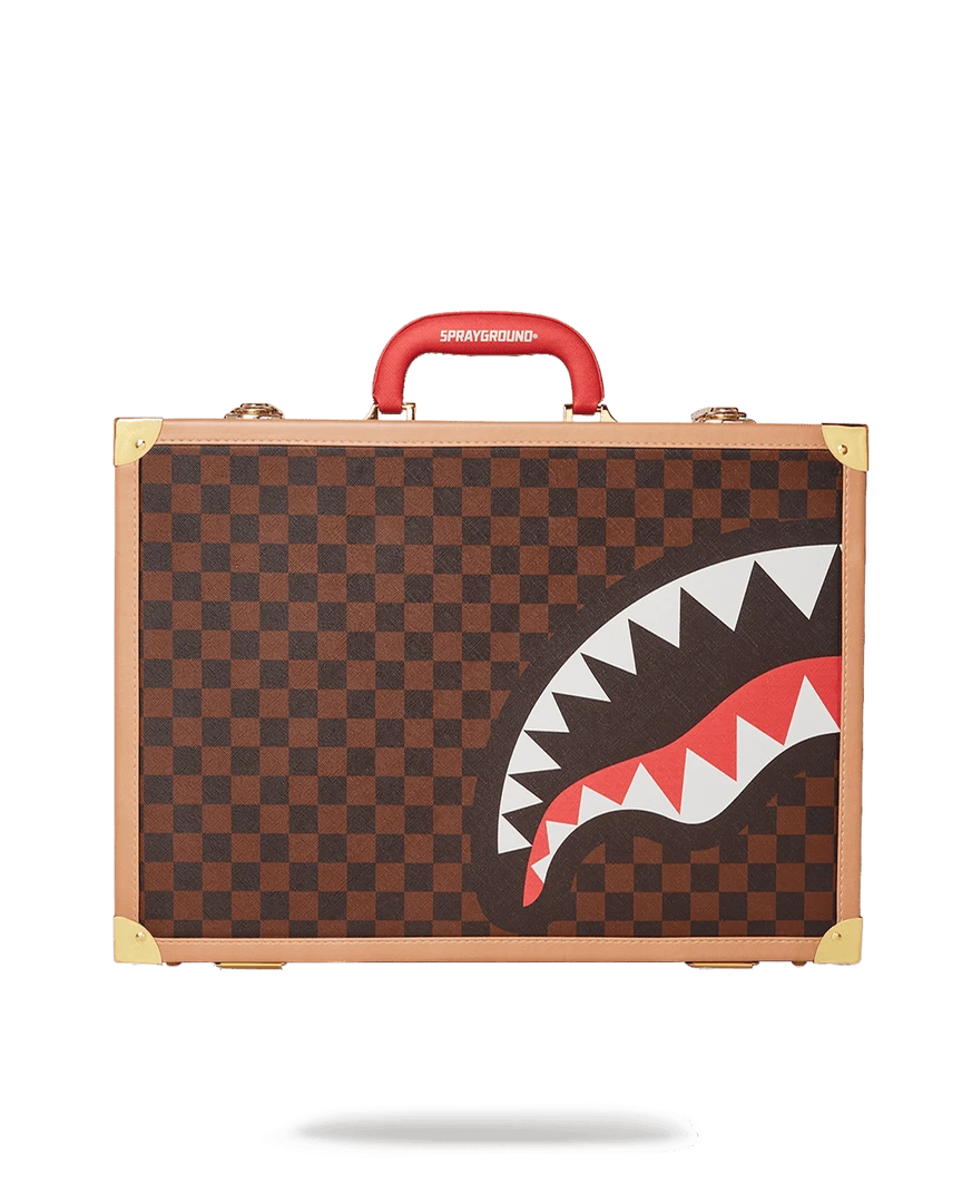 Customized Red Satin lining with Embossed Shark logo and Vegan leather trims