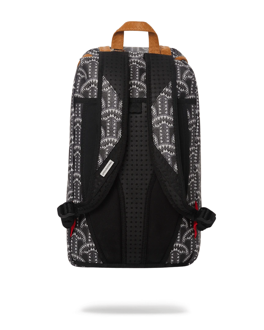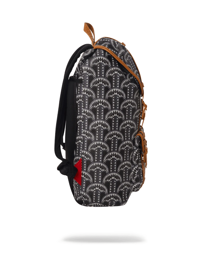 Dimensions: 20.5″ x 5″ x 11.5″ • Top Flap opening w/ adjustable magnetic snap buckle closure • Draw-string closure • Front pocket with adjustable magnetic snap buckle closure • Ergonomic mesh back padding • Adjustable straps for custom sizing • Nylon zippers with metal hardware • Embossed sharkteeth straps • Slide through back sleeve connects to carry-on luggage to free your hands