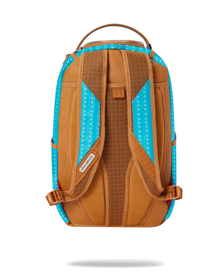 Dimensions: 18″ x 6″ x 11.5″ • Front zipper pocket • Side pockets • Zippered Stash pocket • Separate velour sunglass compartment • Ergonomic mesh back padding • Adjustable Straps for custom sizing • Red zippers with metal hardware • Metal “Sprayground Authentic” badge • Slide through back sleeve connects to carry-on luggage to free your hands