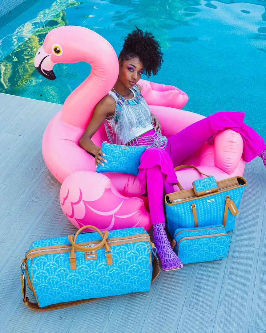 Dimensions: 10″ x 3.25″ x 8″ • Two zippered compartments • Side handle • Gunmetal zippers with metal hardware