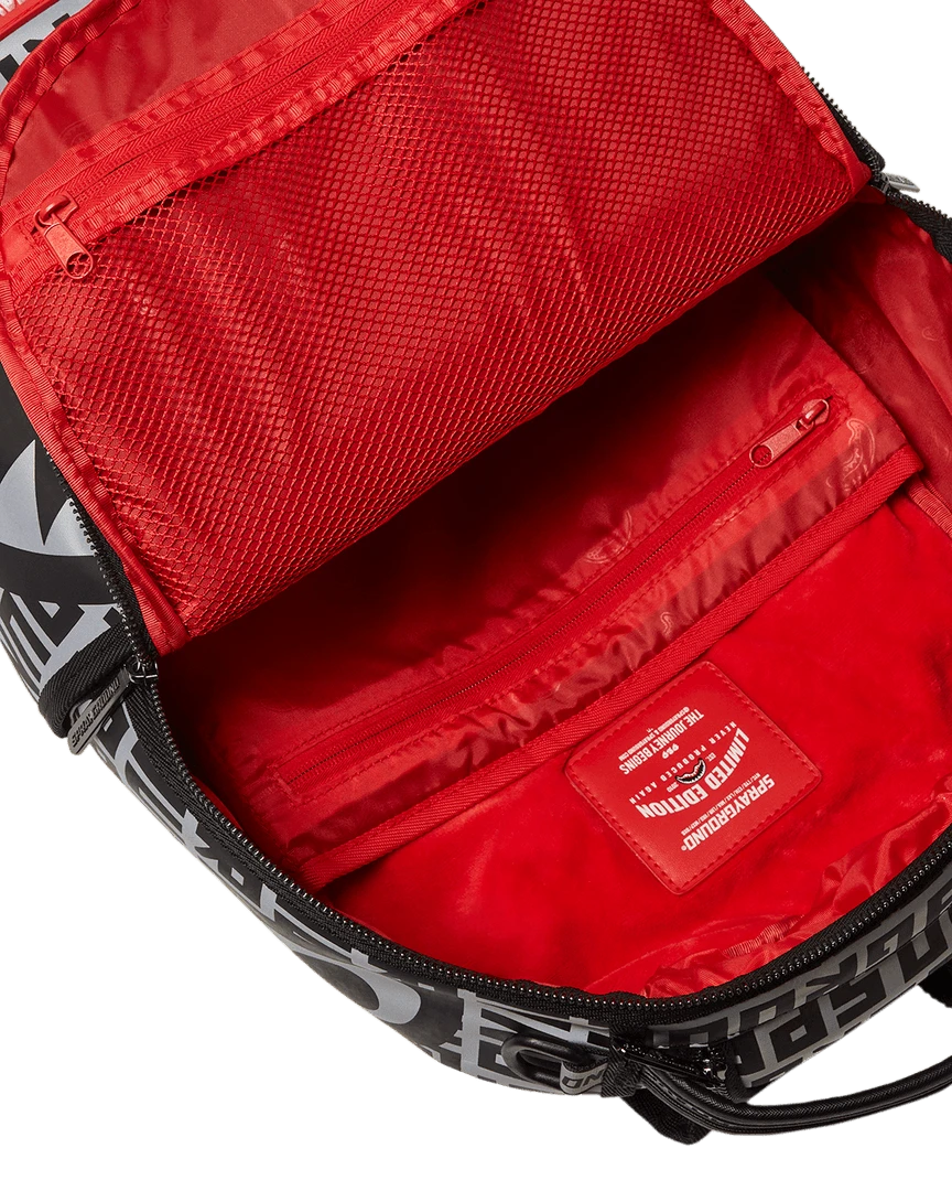 Dimensions: 18″ x 6″ x 11.5″ • Front zipper pocket • Side pockets • Zippered Stash pocket • Separate velour sunglass compartment • Ergonomic mesh back padding • Adjustable Straps for custom sizing • Red zippers with metal hardware • Metal “Sprayground Authentic” badge • Slide through back sleeve connects to carry-on luggage to free your hands