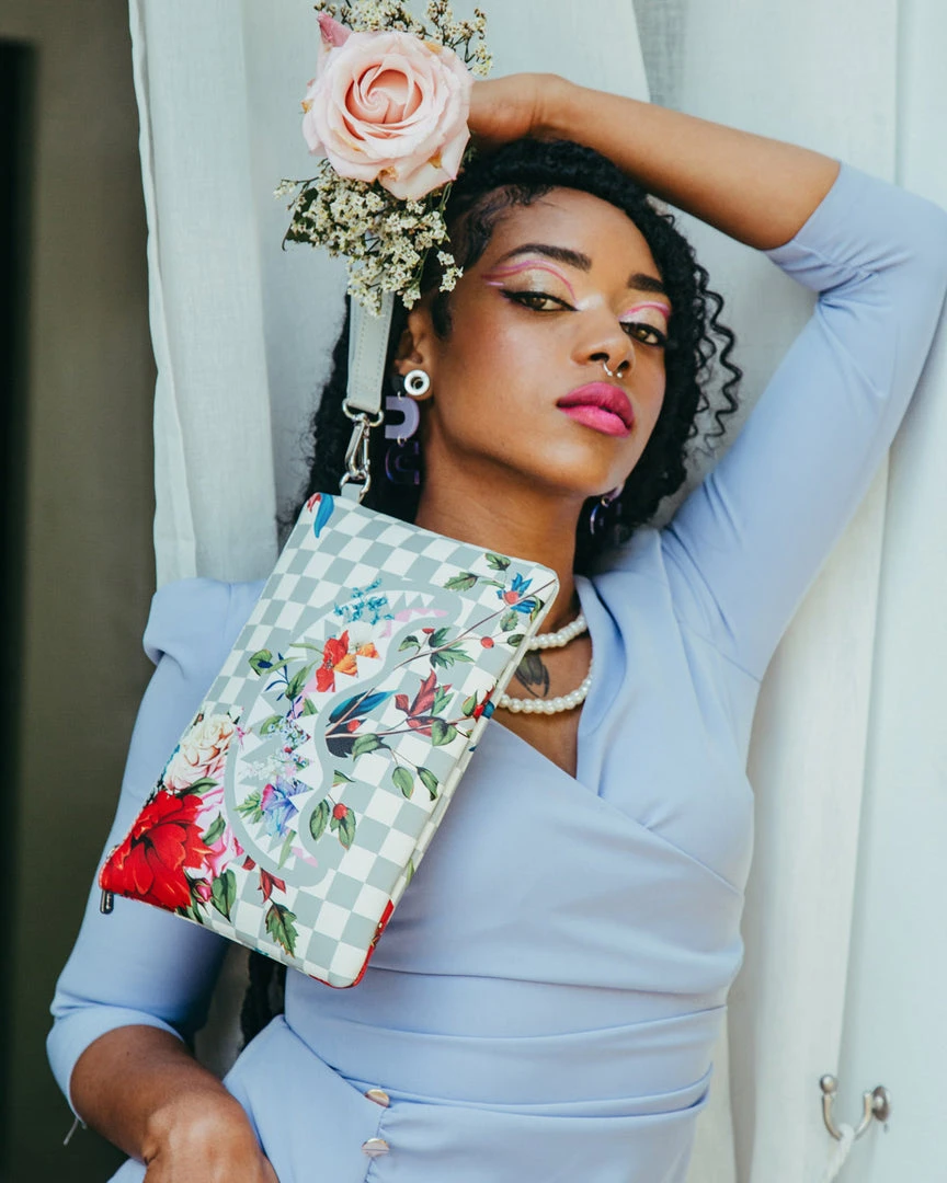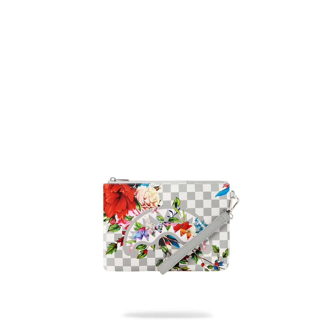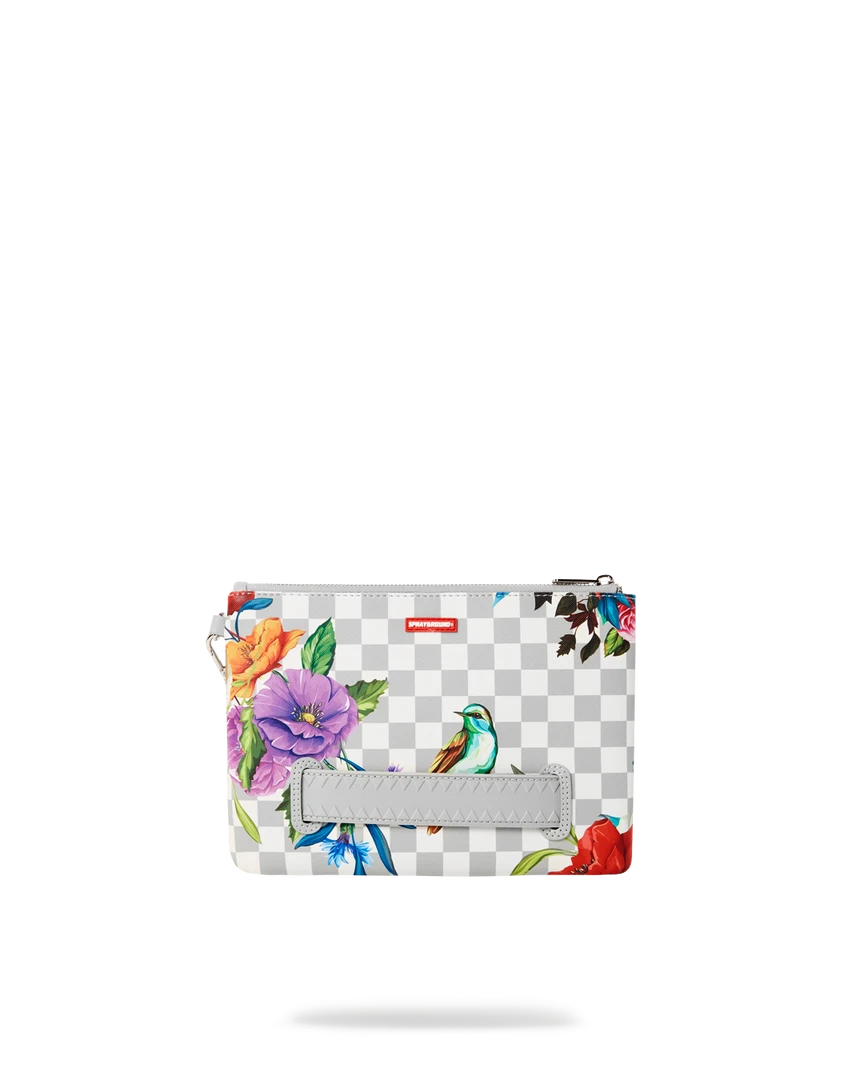 Pouch with removable wristlet strap, Handle on front panel, Zip Closure, secret stash pocket on side seam