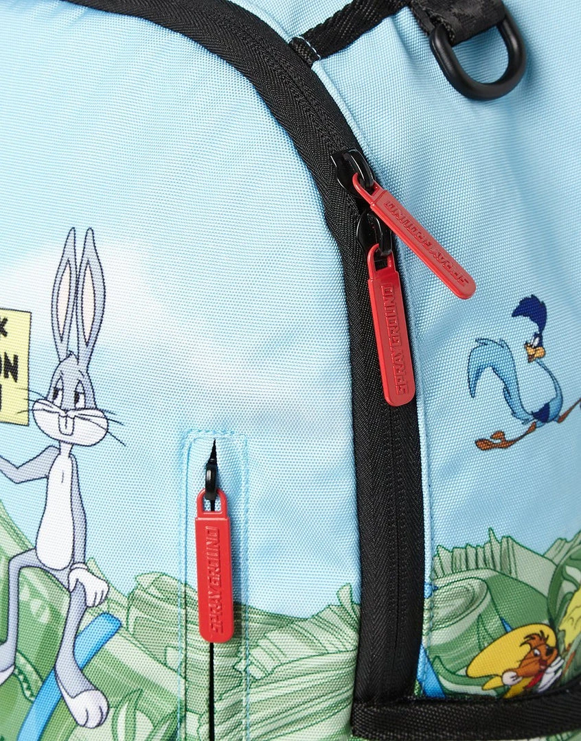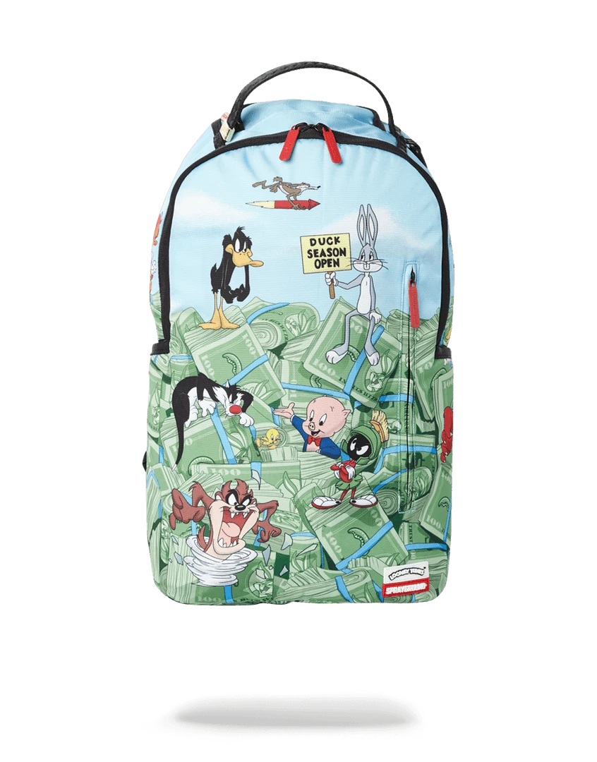 Dimensions: 18″ x 6″ x 11.5″ • Front zipper pocket • Side pockets • Zippered Stash pocket • Separate velour sunglass compartment • Ergonomic mesh back padding • Adjustable Straps for custom sizing • Red zippers with metal hardware • Metal “Sprayground Authentic” badge • Slide through back sleeve connects to carry-on luggage to free your hands