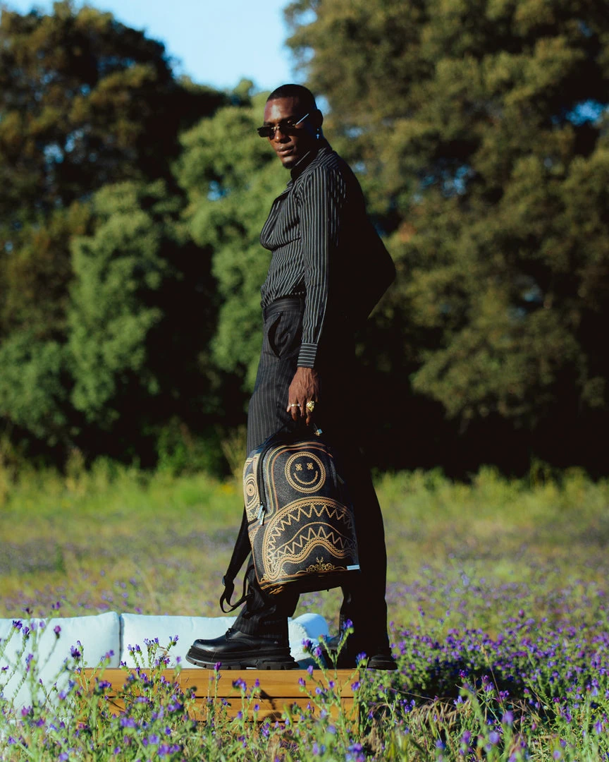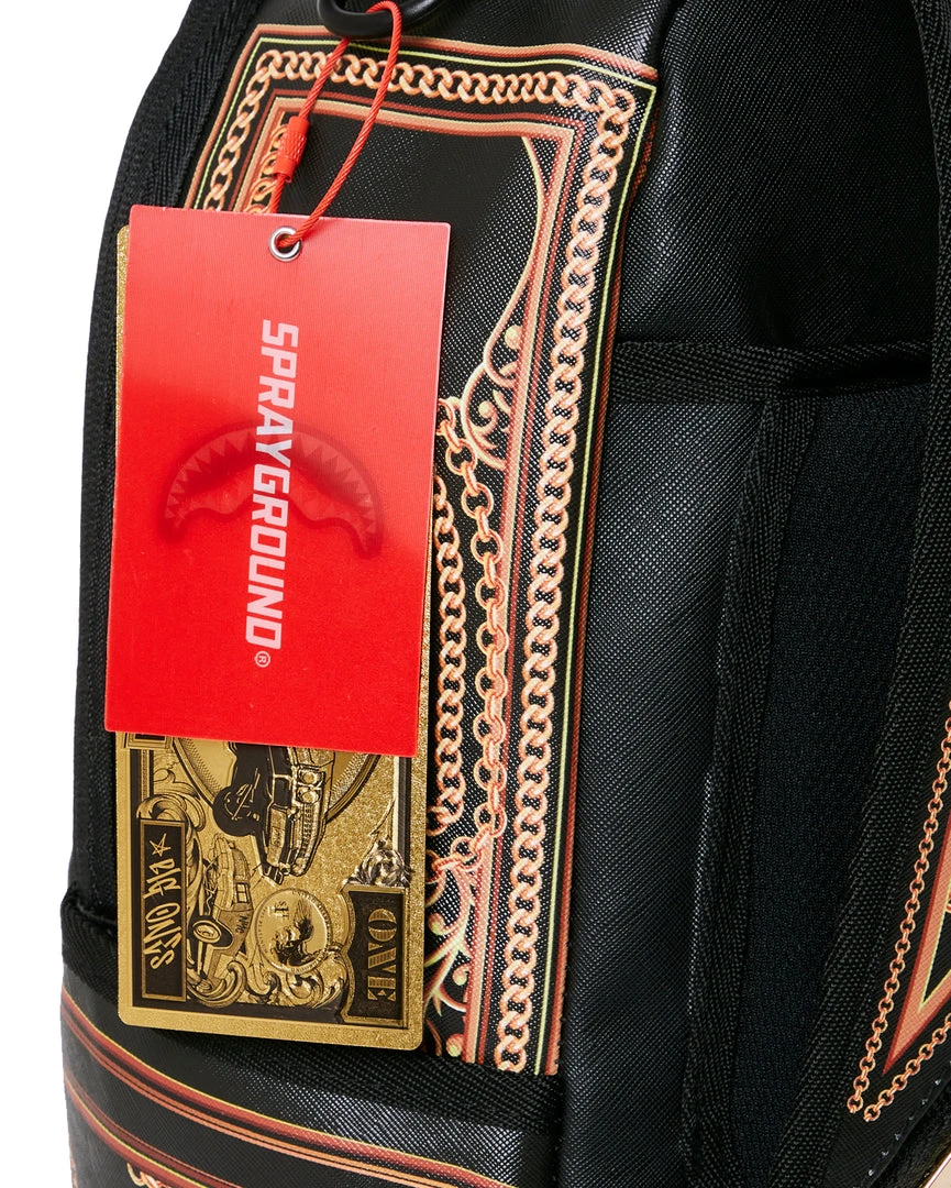 Dimensions: 18″ x 6″ x 11.5″ • Front zipper pocket • Side pockets • Zippered Stash pocket • Separate velour sunglass compartment • Ergonomic mesh back padding • Adjustable Straps for custom sizing • Green zippers with metal hardware • Metal “Sprayground Authentic” badge • Slide through back sleeve connects to carry on luggage to free your hands