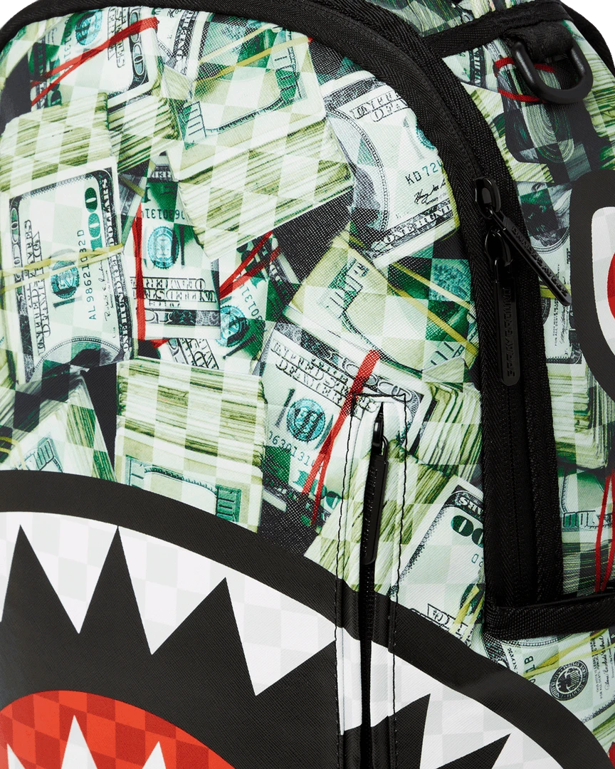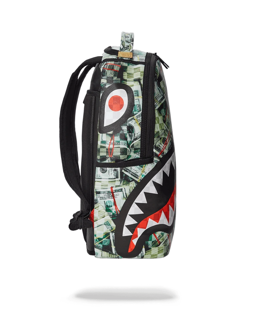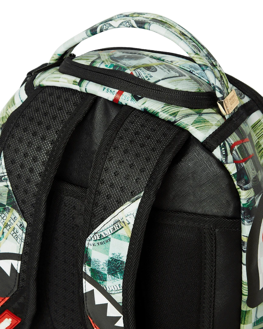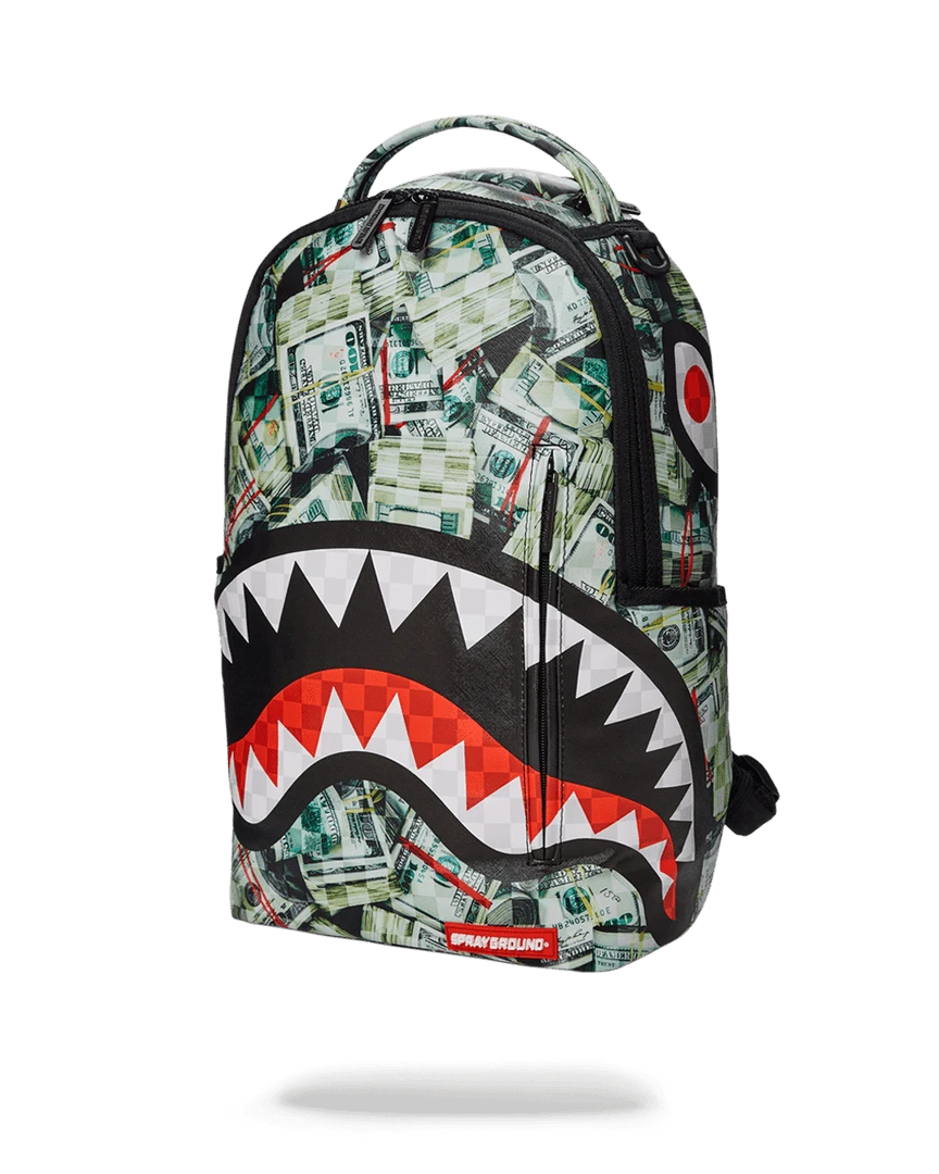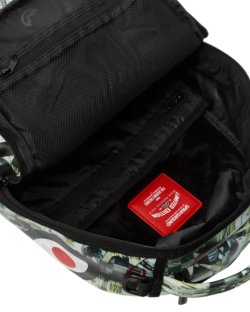 Dimensions: 18″ x 6″ x 11.5″ • Front zipper pocket • Side pockets • Zippered Stash pocket • Separate velour sunglass compartment • Ergonomic mesh back padding • Adjustable Straps for custom sizing • Gold zippers with metal hardware • Metal “Sprayground Authentic” badge • Slide through back sleeve connects to carry-on luggage to free your hands