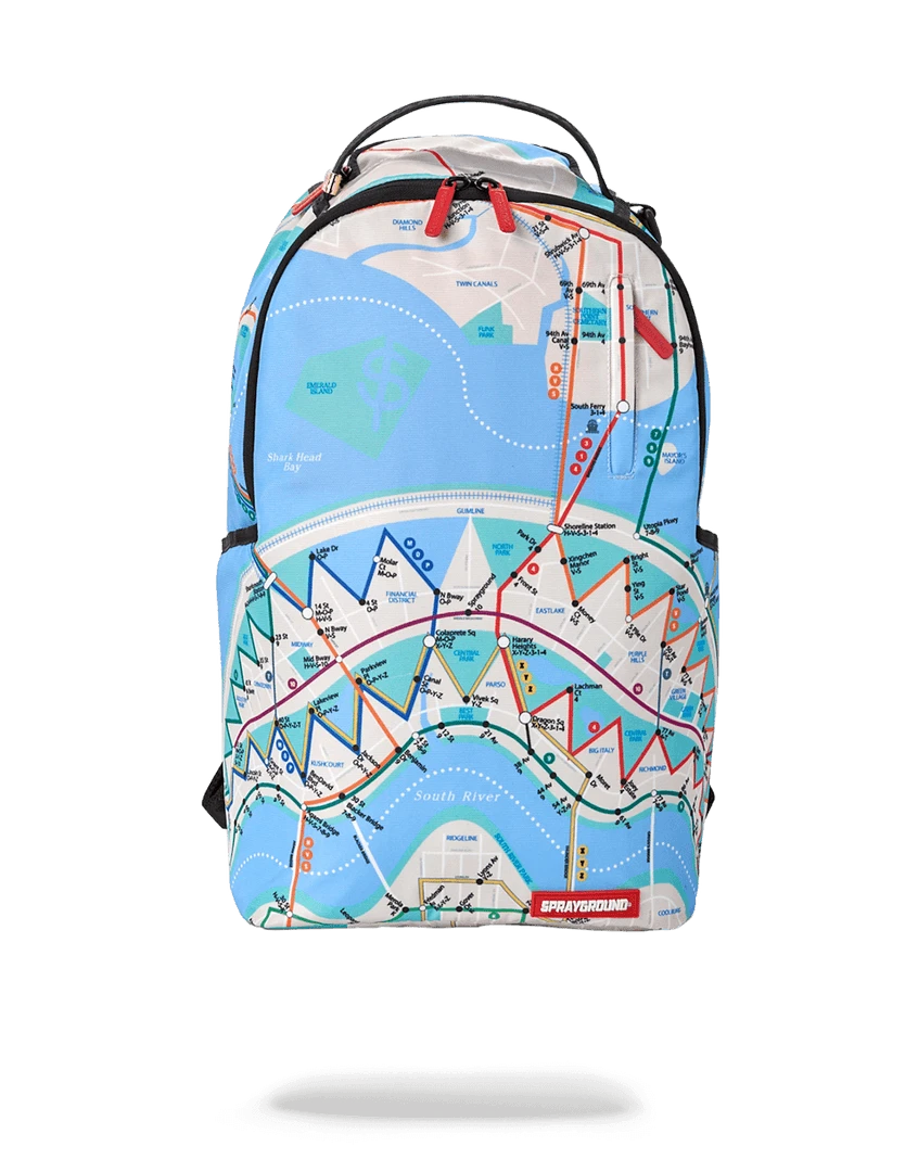 Dimensions: 18″ x 6″ x 11.5″ • Front zipper pocket • Side pockets • Zippered Stash pocket • Separate velour sunglass compartment • Ergonomic mesh back padding • Adjustable Straps for custom sizing • Red zippers with metal hardware • Metal “Sprayground Authentic” badge • Slide through back sleeve connects to carry-on luggage to free your hands