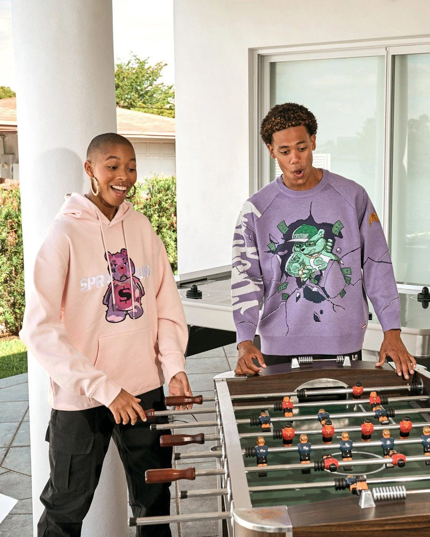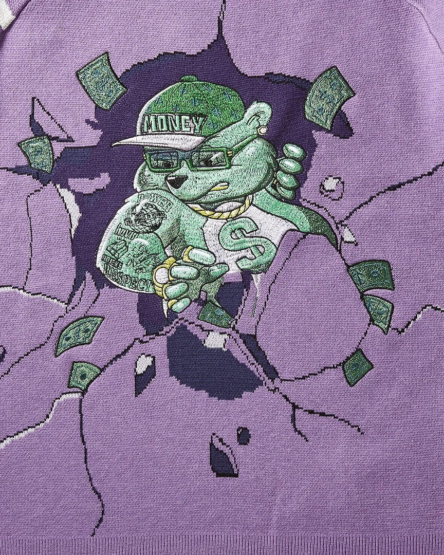 Offset Sprayground Money Bear embroidery at center front chest