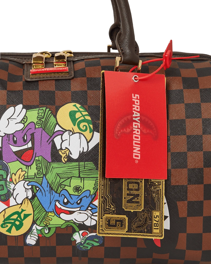 Dimensions: 8″ x 7.5″ x 13″ • Zippered top opening • Zippered pocket on back panel • Zippered side pocket • Removable adjustable strap for custom sizing with reinforced crossbody construction • Logo embossed shoulder pad for comfort • Gold zippers with metal hardware • Zippered stash pocket