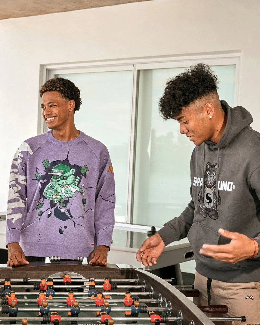 Offset Sprayground Money Bear contrast print applique with embroidery