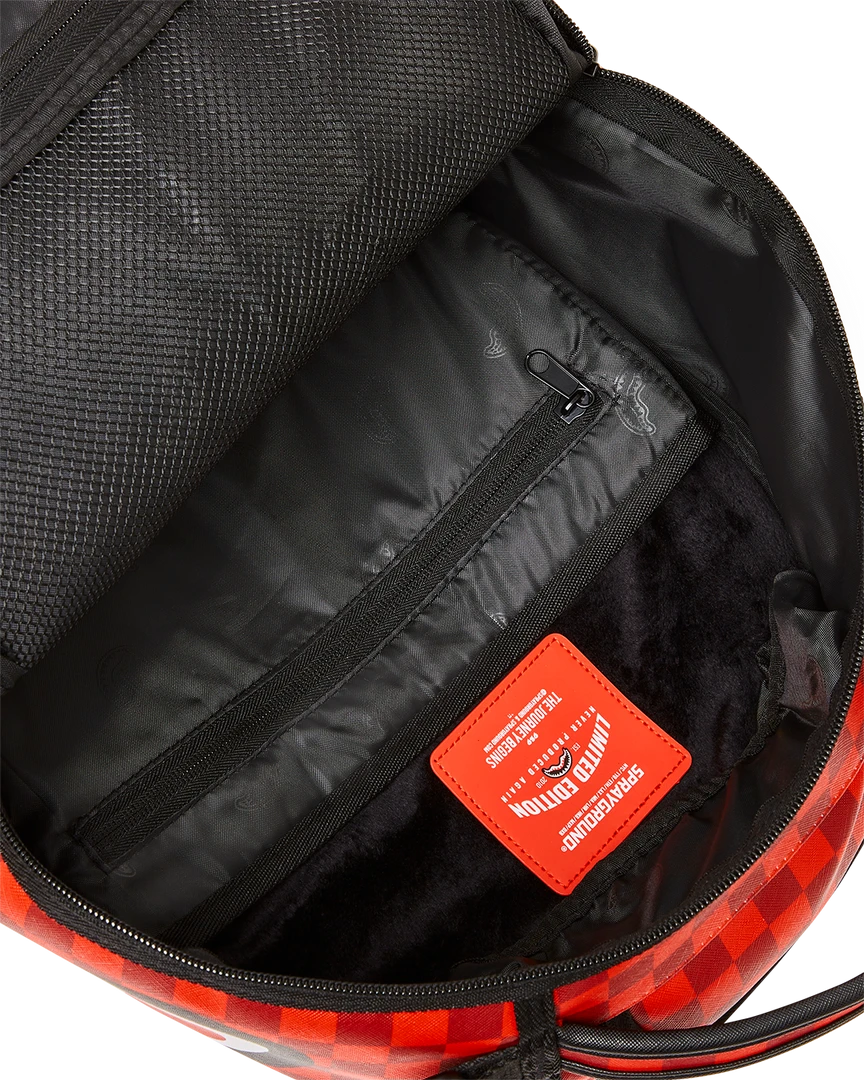 Dimensions: 18″ x 6″ x 11.5″ • Front zipper pocket • Side pockets • Zippered Stash pocket • Separate velour sunglass compartment • Ergonomic mesh back padding • Adjustable Straps for custom sizing • Gold zippers with metal hardware • Metal “Sprayground Authentic” badge • Slide through back sleeve connects to carry on luggage to free your hands
