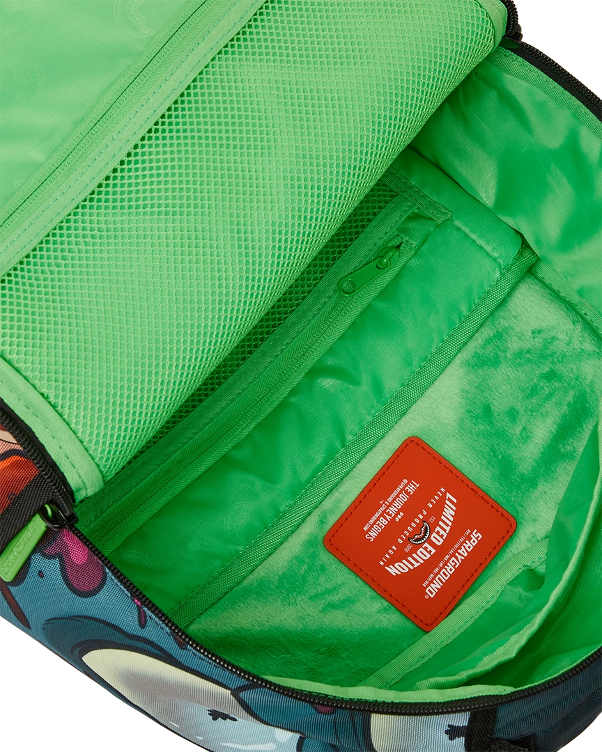 Dimensions: 18″ x 6″ x 11.5″ • Front zipper pocket • Side pockets • Zippered Stash pocket • Separate velour sunglass compartment • Ergonomic mesh back padding • Adjustable Straps for custom sizing • Green zippers with metal hardware • Metal “Sprayground Authentic” badge • Slide through back sleeve connects to carry on luggage to free your hands