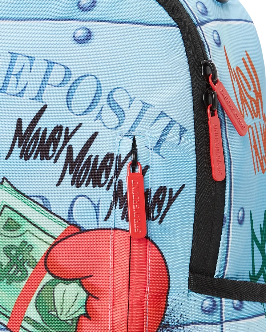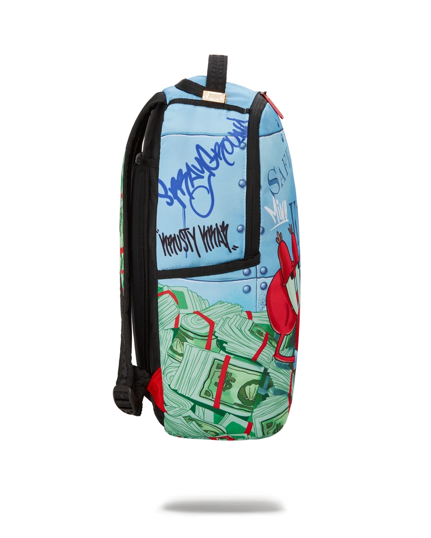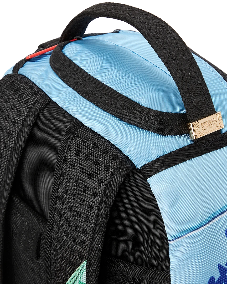 Dimensions: 18″ x 6″ x 11.5″ • Front zipper pocket • Side pockets • Zippered Stash pocket • Separate velour sunglass compartment • Ergonomic mesh back padding • Adjustable Straps for custom sizing • Green zippers with metal hardware • Metal “Sprayground Authentic” badge • Slide through back sleeve connects to carry on luggage to free your hands